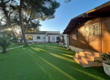 Acogedor chalet situado en una de las zonas más bonitas de Orihuela Costa, en Dehesa de Campoamor. La vivienda de unos 200m2 construida sobre la parcela de casi 1500m2 está a menos de 900m de las preciosas playas de Campoamor, a poca distancia caminando hasta la zona donde se encuentran las pistas de tenis y pádel, el supermercado, la farmacia, varios bares y restaurantes y otros servicios. El chalet construido en planta baja, encontraremos un total de 3 habitaciones y 2 baños, la habitación principal con baño en suite y un gran vestidor. Salón comedor con chimenea, grande cocina independiente, patio trasero con acceso a la zona del lavadero y un bonito porche delantero de unos 20m2. En el bien arreglado y cuidado jardín encontramos una gran piscina (15x4) privada con la cubierta transparente corredera, gimnasio con jacuzzy y sauna finlandesa, una casita de madera para invitados con un pequeño salón, 2 habitaciones y baño, y otras dos casas de madera, una con el baño que da servicio al jardín y la piscina y un trastero. Cuenta también con garaje privado para varios vehículos y zona de barbacoa en el patio trasero de la casa. Se vende amueblada y equipada.