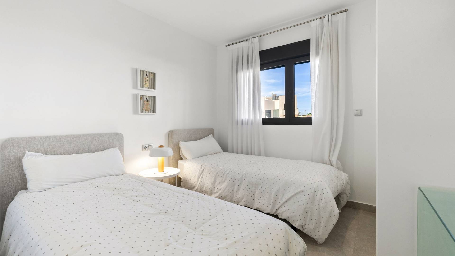 Moderno apartamento en Jardines de Montesolana, Orihuela Costa. Apartamento distribuido en dos habitaciones y dos baños. Dispone de un amplio salón-comedor con cocina americana y acceso directo al amplio jardín de 43m2 con vistas a las zonas comunes del residencial con orientación sur. Se encuentra en la urbanización de Jardines de Montesolana que dispone de piscina comunitaria y zonas ajardinadas. Este residencial se encuentra cerca del Centro Comercial La Zenia Boulevard (Orihuela Costa). La Zenia está cerca de Cabo Roig, Campoamor y Playa Flamenca. Se trata de una zona de cultivo, cerca de todas las comodidades y el famoso centro comercial La Zenia Boulevard. A pocos minutos de la N -332 y la autopista del Mediterráneo AP-7 en dirección Alicante y Cartagena. También existen alrededor de los campos de golf de Villamartín, Las Ramblas, Campoamor y Las Colinas.