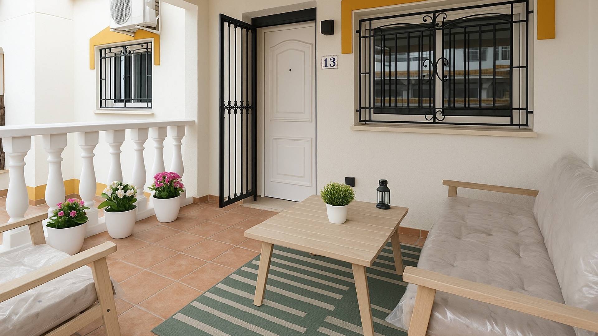Se ofrece esta vivienda adosada de dos plantas, completamente renovada, situada en una urbanización tranquila entre Los Altos, La Florida y Punta Prima, en Orihuela Costa. La propiedad ha sido actualizada con un estilo moderno y funcional, y se presenta en excelente estado, lista para entrar a vivir. En la planta baja se encuentra un salón-comedor con buena entrada de luz natural y aire acondicionado, una cocina independiente equipada con electrodomésticos actuales, un dormitorio doble, un baño con ducha y una zona de lavandería. Desde el salón se accede a una terraza orientada al sur, ideal para disfrutar del clima de la zona. La planta superior dispone de un dormitorio principal amplio, también con aire acondicionado y espacio de trabajo, un tercer dormitorio con dos camas individuales y un segundo baño completo con ducha. La vivienda cuenta con un porche cubierto, jardín privado y mobiliario exterior. Se entrega completamente amueblada, salvo objetos personales y decorativos. Forma parte de un residencial bien mantenido con piscina comunitaria y ofrece facilidad de aparcamiento en la misma calle. Ubicada a pocos minutos de la playa de Punta Prima, la propiedad también está cerca de supermercados, restaurantes, transporte público y centros comerciales como Zenia Boulevard. Una opción ideal tanto como residencia habitual como para uso vacacional.