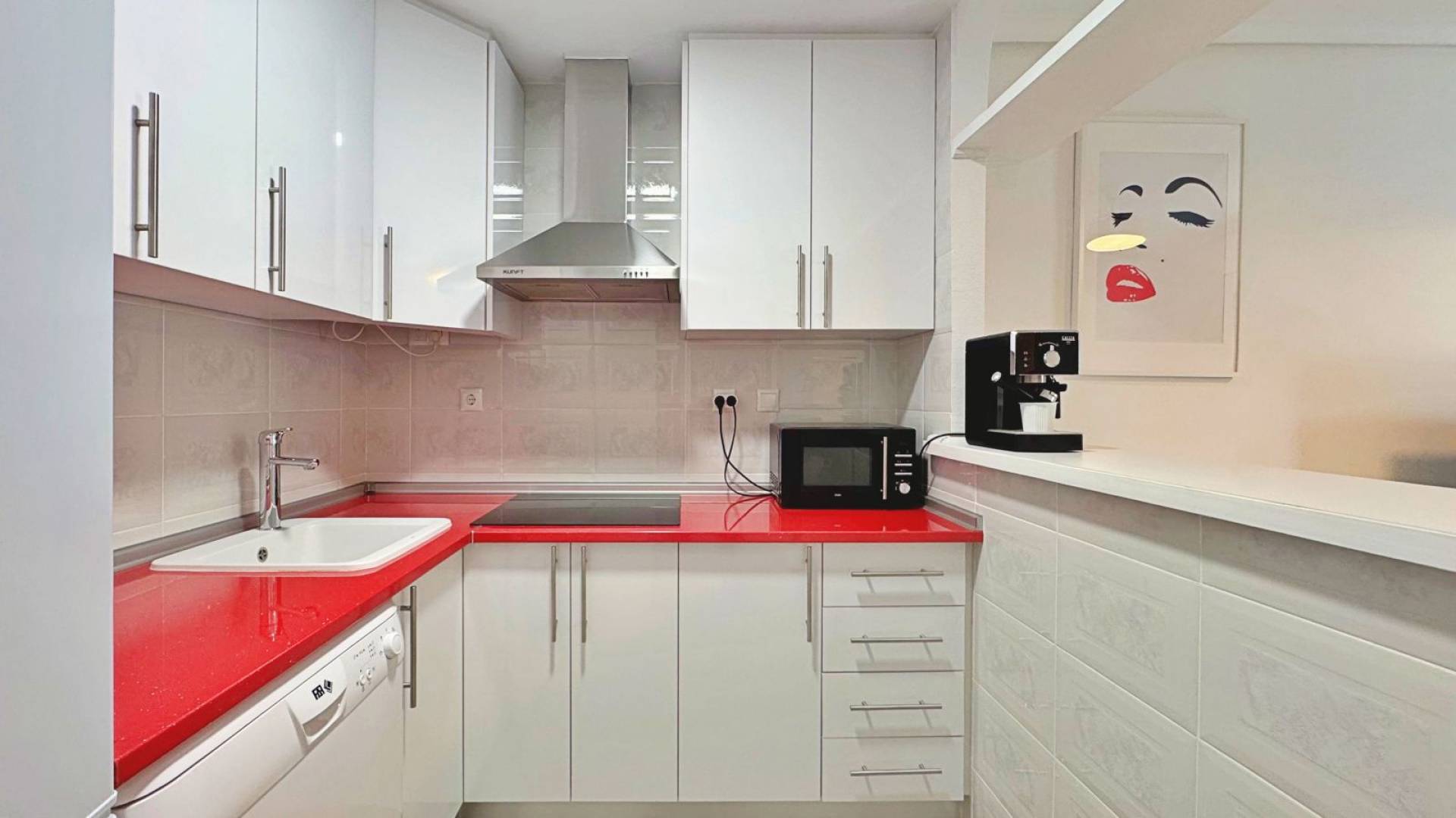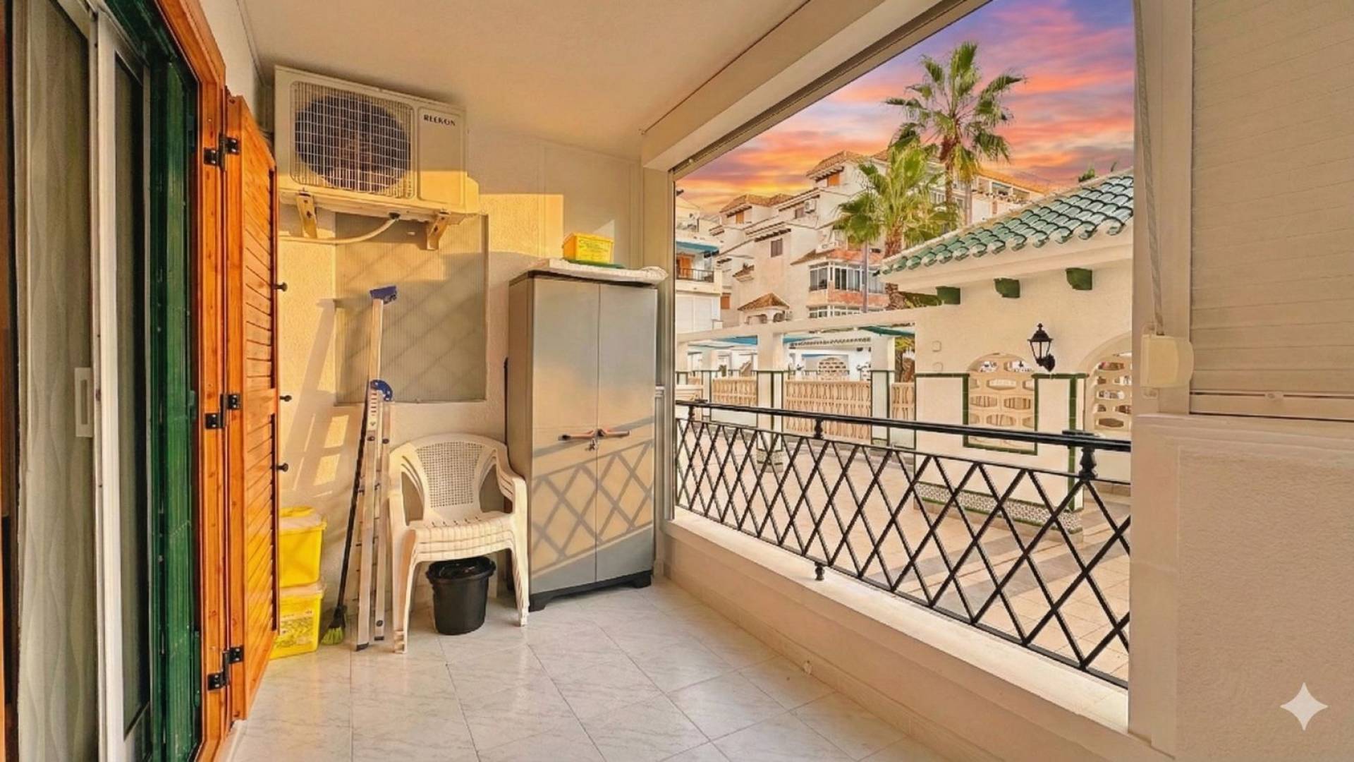 A tan solo 200 metros de la playa de La Mata, en Torrevieja, se encuentra este precioso apartamento en venta, completamente reformado con materiales de alta calidad y un diseño moderno y funcional. La vivienda, situada en la urbanización Viñamar V, cuenta con 1 dormitorio, 1 baño, una superficie interior de 45 m² y una amplia terraza de 12 m² orientada al sur, ideal para disfrutar del sol durante todo el año. La terraza dispone de toldos, creando un espacio perfecto para relajarse al aire libre con privacidad y confort. Este apartamento se vende totalmente amueblado y equipado con electrodomésticos, aire acondicionado y sistema de alarma, listo para entrar a vivir o comenzar a rentabilizar desde el primer día. Incluye además una plaza de garaje privada, un valor añadido muy apreciado en esta zona costera de alta demanda. Ubicado dentro de una urbanización cerrada con piscina comunitaria y zonas comunes cuidadas, ofrece seguridad, tranquilidad y un entorno perfecto tanto para residencia habitual como para vacaciones. En los alrededores se encuentran todos los servicios necesarios: supermercados, restaurantes, farmacias, transporte público y zonas de ocio. Gracias a su excelente ubicación junto al mar, su equipamiento completo y su alto potencial de inversión, esta propiedad representa una magnífica oportunidad para comprar un apartamento en La Mata, Torrevieja, ideal tanto como vivienda permanente como inversión en alquiler vacacional o de larga estancia.