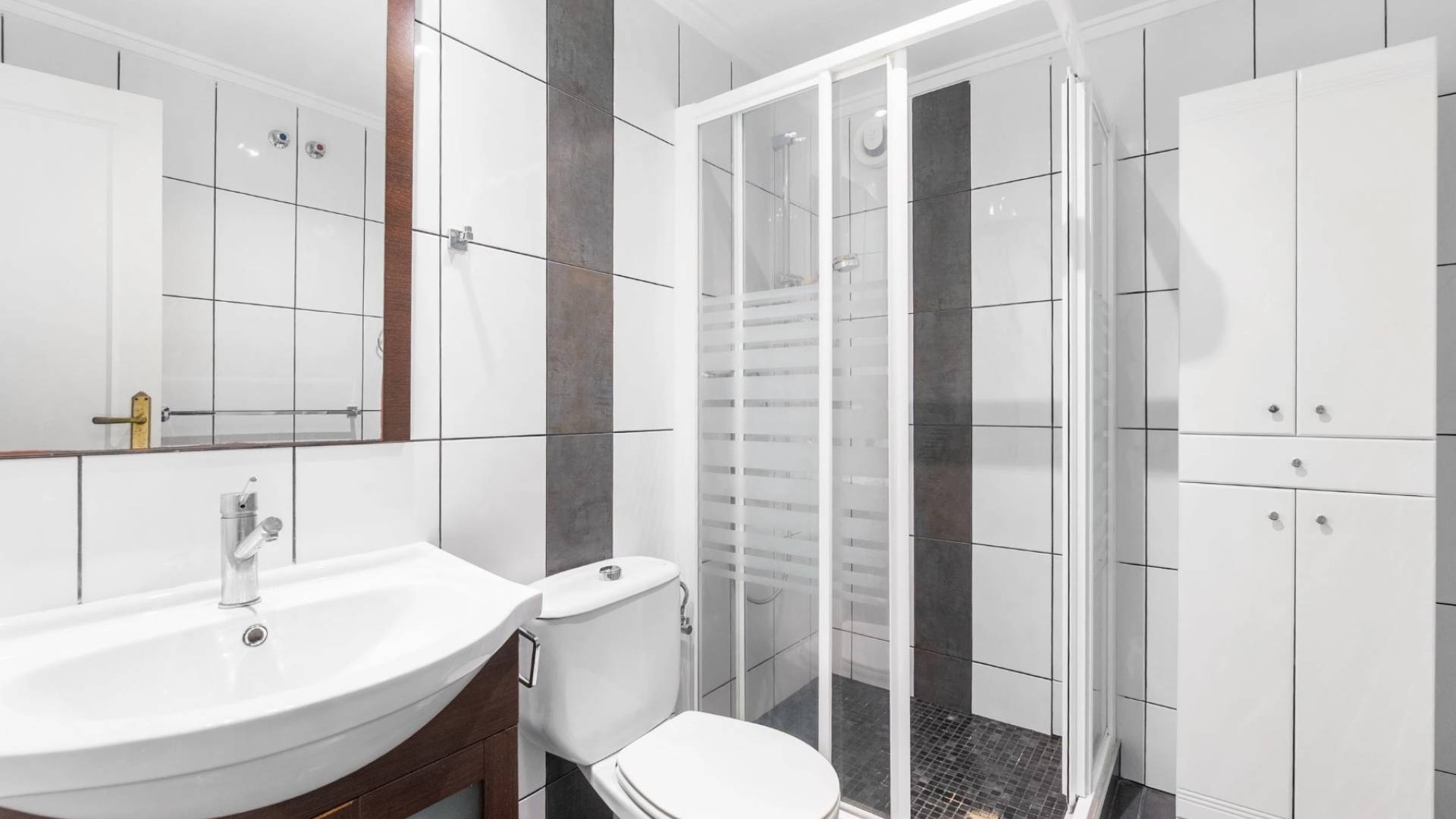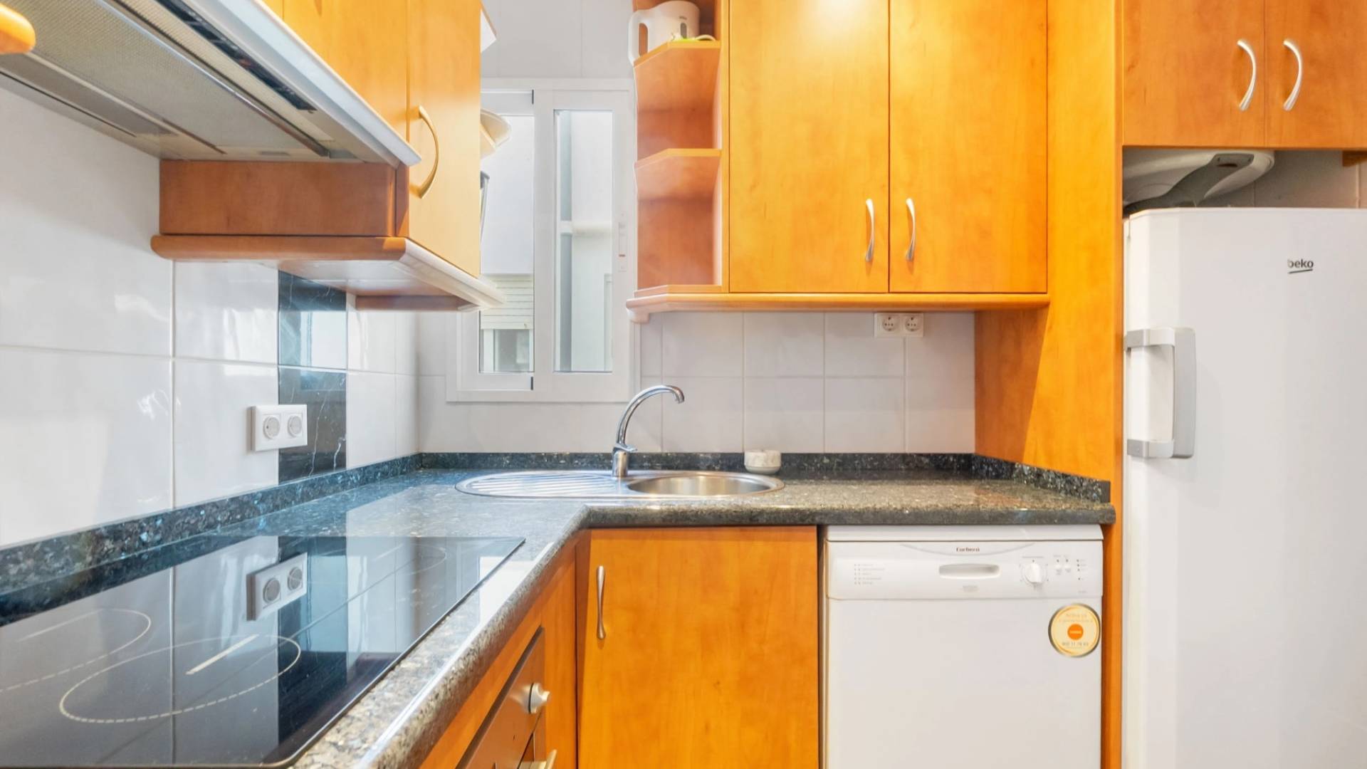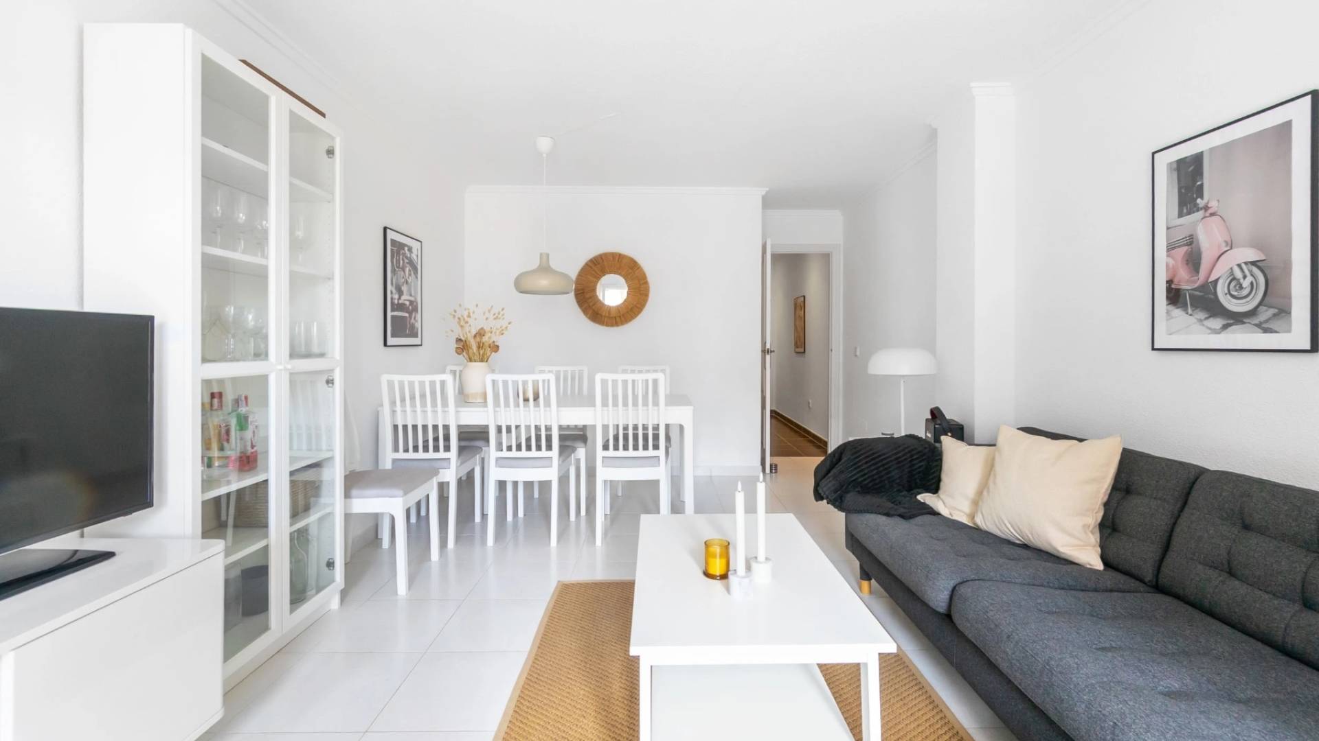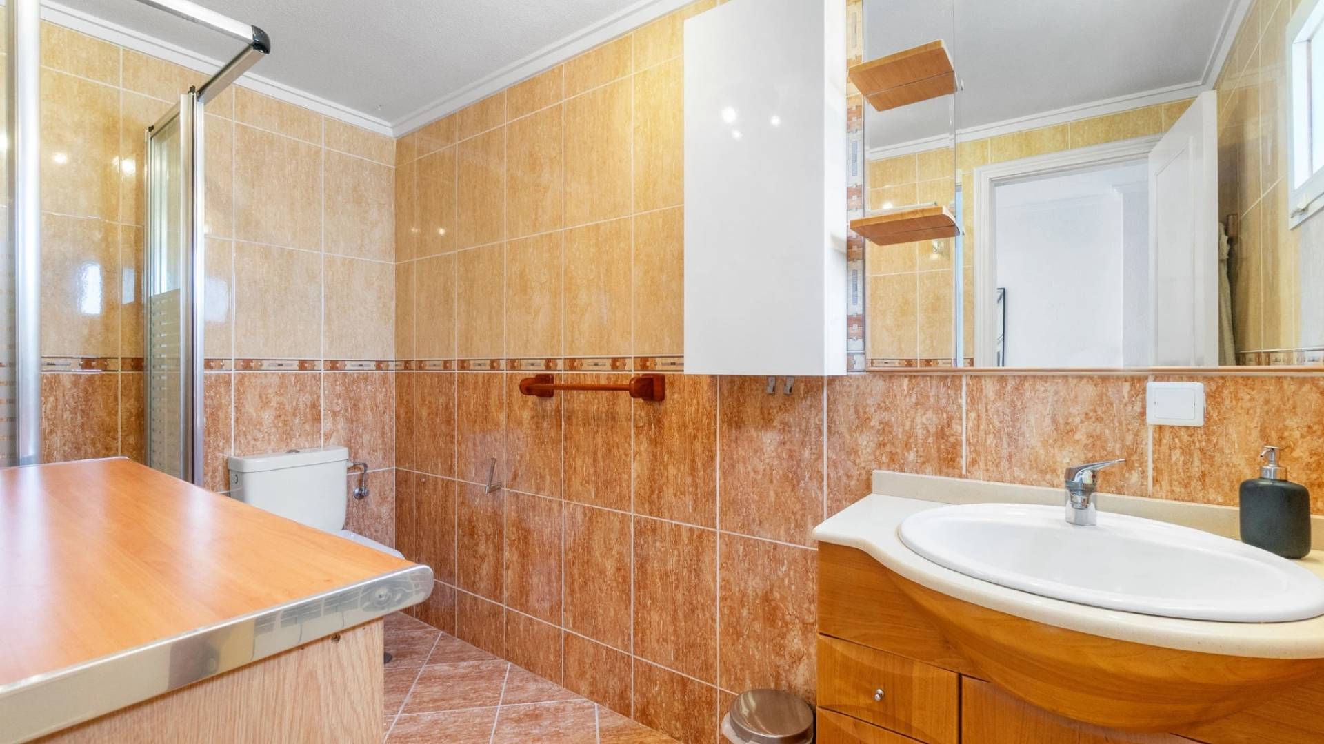 La vivienda, con una distribución inteligente, ofrece tres dormitorios y un baño reformado con ducha en la planta baja. Además, cuenta con una cocina independiente y bien equipada, y un luminoso y acogedor salón con acceso directo a una cómoda terraza cubierta desde donde se vislumbra el mar Mediterráneo a la izquierda.