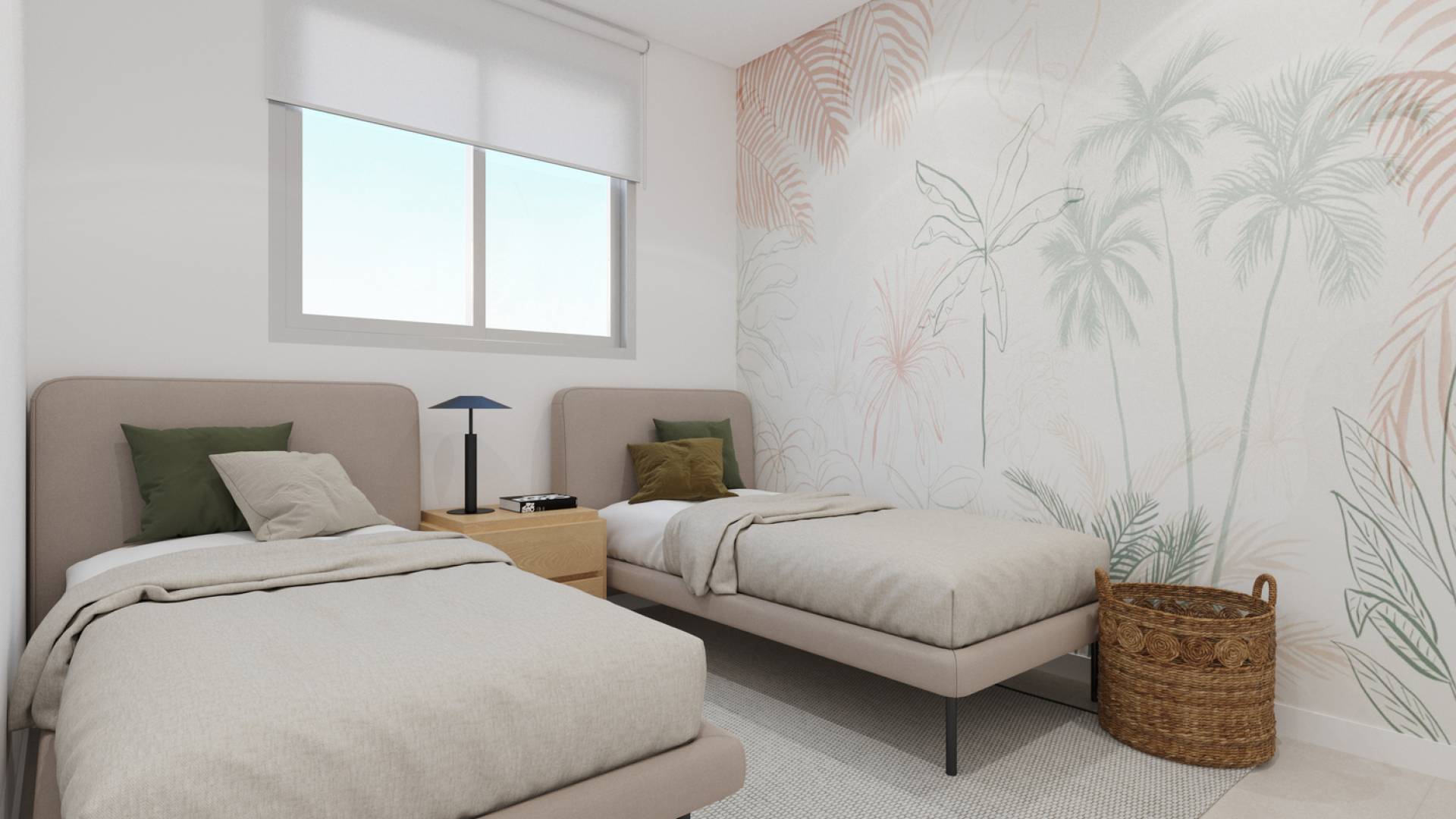 En el interior, las viviendas están diseñadas para ofrecer un espacio acogedor y funcional. Los apartamentos y áticos disponen de 2 o 3 dormitorios y 2 baños, adaptándose a diferentes necesidades familiares. La distribución incluye amplias terrazas, perfectas para disfrutar de las vistas y del clima templado de la región. Los acabados de calidad, como los suelos de cerámica y los armarios empotrados, aseguran un ambiente moderno y práctico, mientras que la posibilidad de contar con un solárium en algunas tipologías añade un valor adicional a la experiencia de vivir aquí.