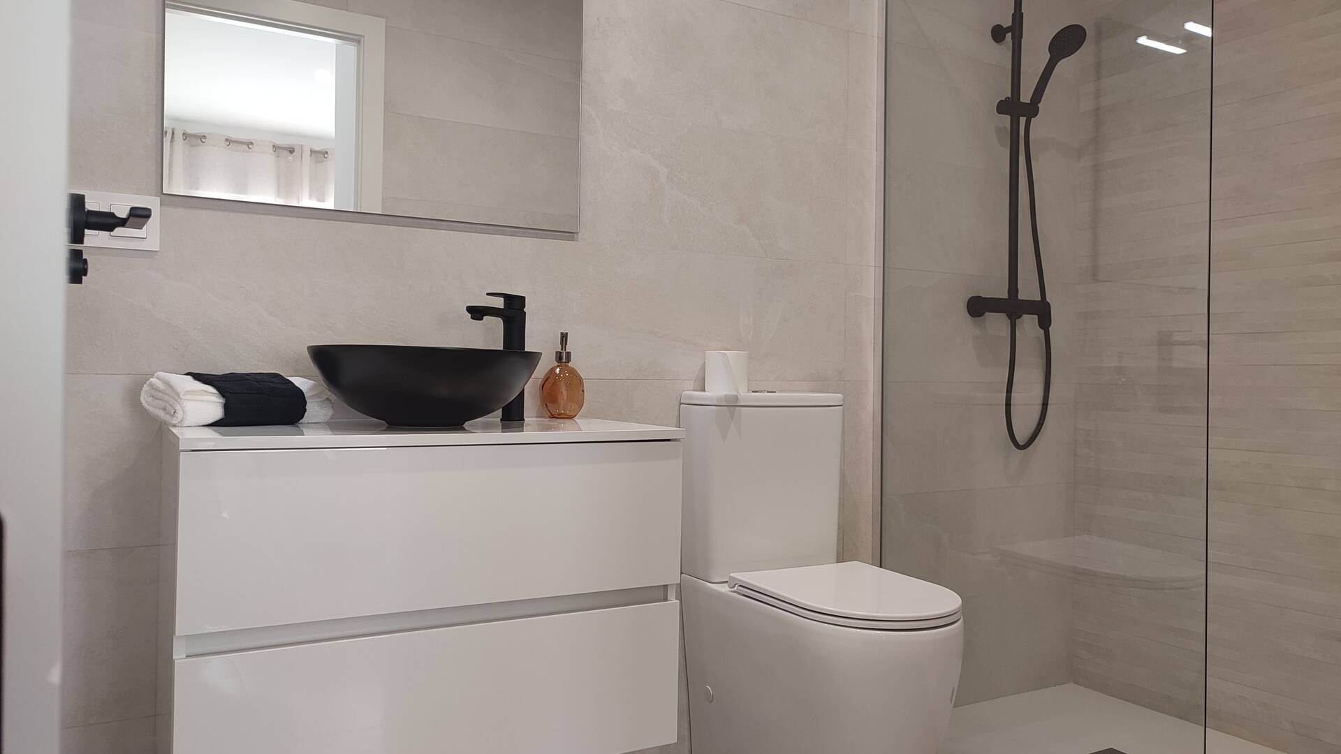 El interior de las viviendas está cuidadosamente diseñado para maximizar el confort y la funcionalidad. Con tres dormitorios y dos baños, cada propiedad ofrece un espacio amplio y bien distribuido. Los suelos de gres porcelánico aportan un toque de elegancia y durabilidad. Las viviendas están equipadas con electrodomésticos modernos y armarios empotrados, facilitando el almacenamiento y la organización. Además, cuentan con preinstalación de aire acondicionado, asegurando un ambiente agradable durante todo el año.
