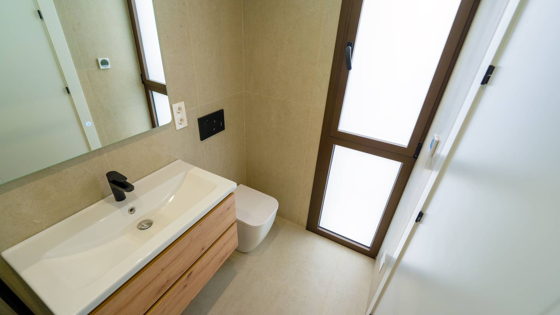 El interior de estos adosados en Heredades está cuidadosamente diseñado para ofrecer confort y funcionalidad. Con tres dormitorios y tres baños, cada propiedad está equipada para satisfacer las necesidades de una familia moderna. Los armarios empotrados en los dormitorios optimizan el espacio de almacenamiento, manteniendo el orden y la estética. El suelo de gres porcelánico no solo aporta un acabado elegante, sino que también es práctico y fácil de mantener. La distribución incluye un garaje, proporcionando un espacio seguro para el vehículo y almacenamiento adicional. La combinación de estos elementos asegura un ambiente interior acogedor y eficiente, ideal para el día a día.