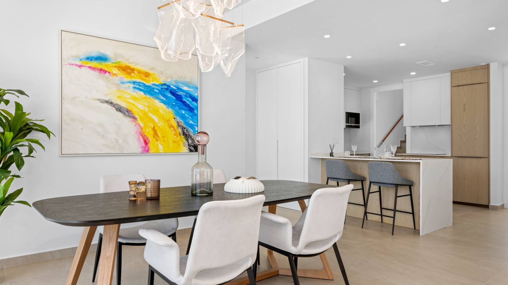 El diseño exterior de las villas en Orihuela destaca por su elegancia y funcionalidad. Cada propiedad cuenta con un jardín privado, perfecto para disfrutar del clima mediterráneo. La presencia de una piscina privada añade un toque de lujo y exclusividad, permitiendo refrescarse y relajarse en la comodidad del hogar. Las terrazas, amplias y bien orientadas, son ideales para disfrutar de comidas al aire libre o simplemente relajarse mientras se contempla el entorno. Además, el solárium ofrece un espacio adicional para tomar el sol y disfrutar de las vistas panorámicas del entorno.