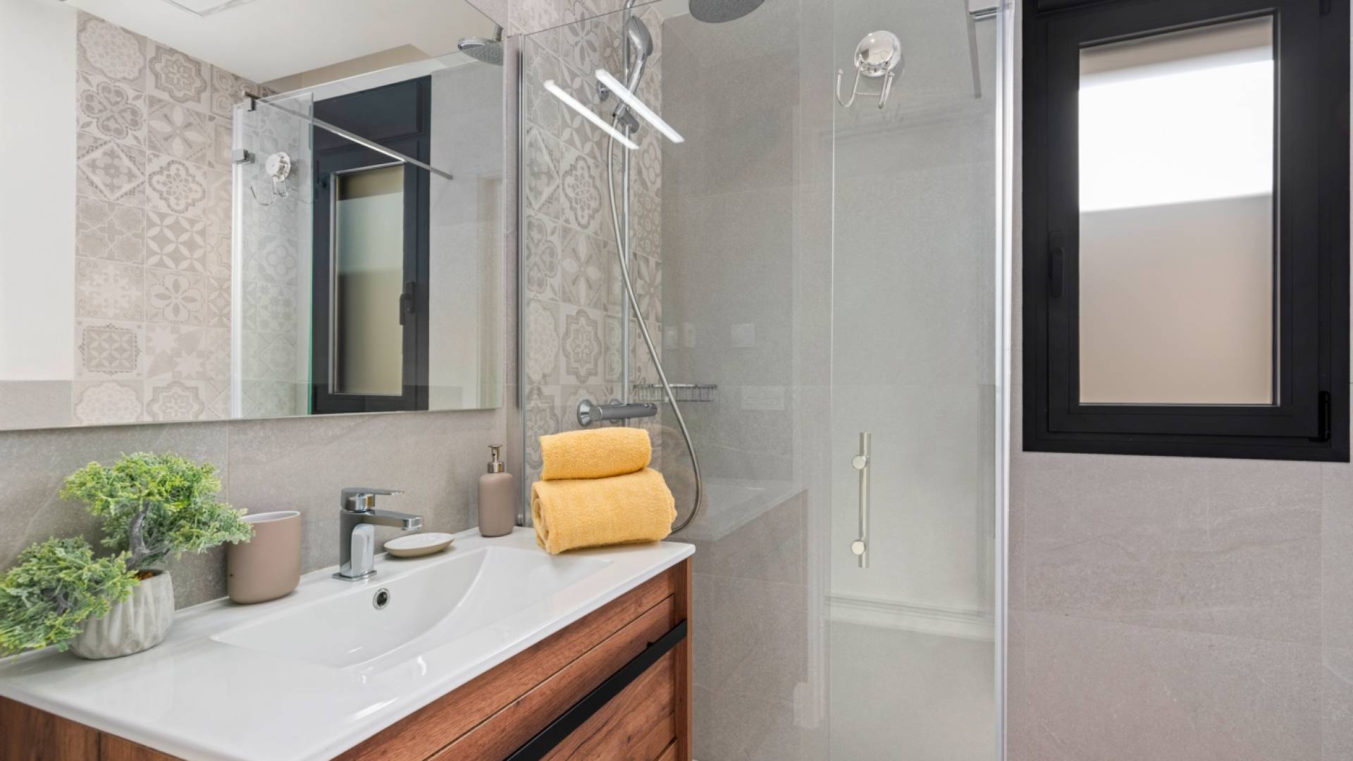 Moderno semi-adosado situado en una zona tranquila de San Fulgencio, en una parcela con piscina privada y espacio exterior destinado al descanso. La vivienda ha sido diseñada para que el jardín sea una prolongación natural de la zona de día, y sus grandes ventanales aportan abundante luz natural, creando espacios luminosos, amplios y abiertos al entorno. La propiedad se distribuye en dos plantas. La planta baja cuenta con un amplio salón con cocina abierta, con acceso directo al jardín. En este nivel se encuentran también dos dormitorios independientes, un baño con acceso desde el pasillo y un cuarto auxiliar independiente destinado a lavandería y almacenamiento adicional. La primera planta constituye la zona privada de los propietarios, con un dormitorio principal que dispone de baño en suite y salida a una amplia y soleada terraza, ideal para el descanso diario. La vivienda fue construida en 2022, ofreciendo un estándar moderno y una distribución funcional. La ubicación combina comodidad para la vida diaria con cercanía a la naturaleza: la propiedad se encuentra a aproximadamente 5 km de la playa y a unos 30 km del Aeropuerto de Alicante-Elche. En las inmediaciones hay dunas naturales, amplias playas de arena y un entorno residencial tranquilo. Se trata de una excelente opción tanto para quienes buscan una vivienda habitual como para inversores, ya que su distribución funcional, arquitectura contemporánea y buena ubicación la convierten en una propiedad atractiva en ambos casos.