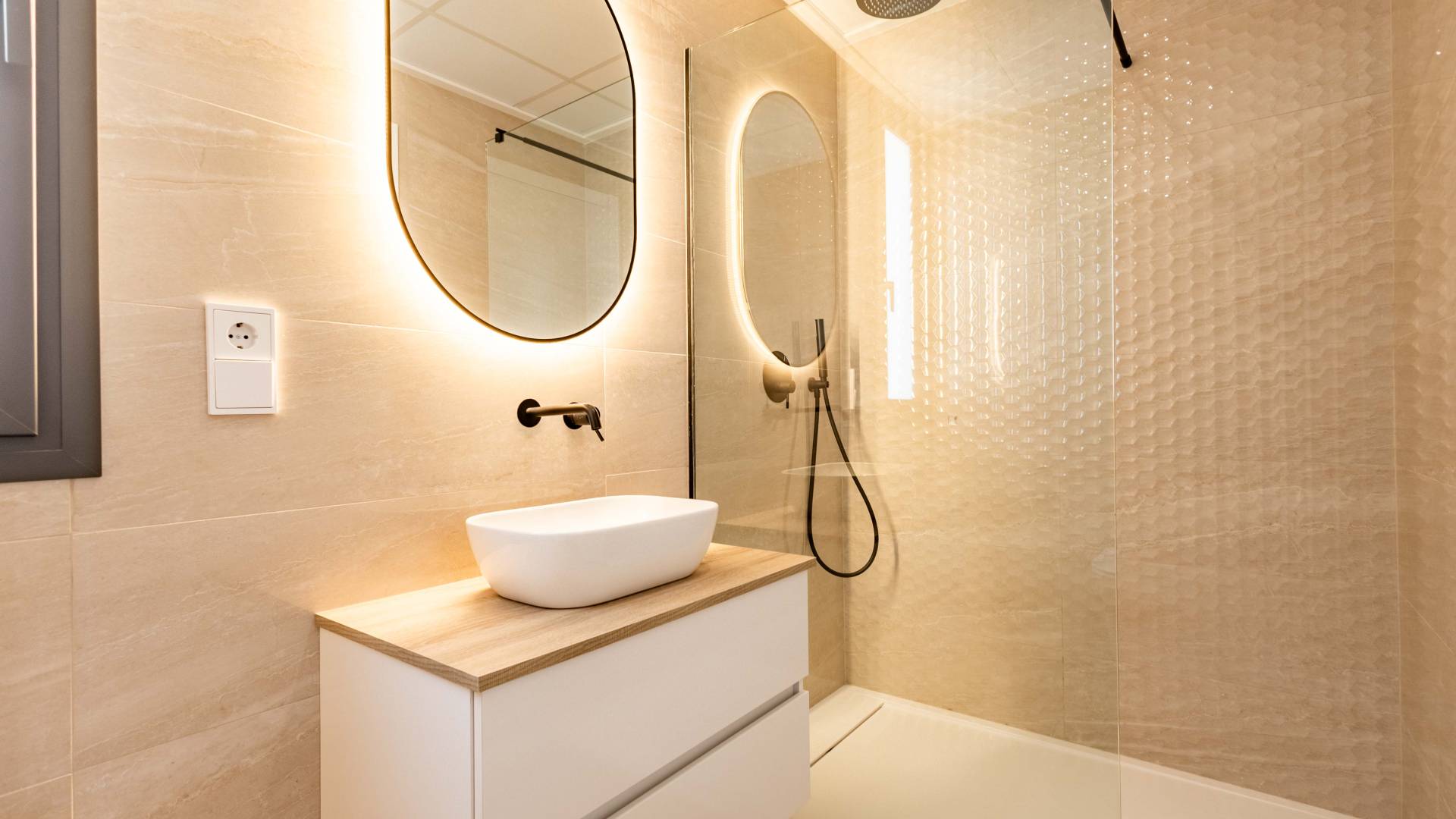 Las viviendas cuentan con amplios espacios exteriores que incluyen un jardín privado y una terraza, ideales para disfrutar del clima mediterráneo. Además, cada propiedad dispone de un solárium y una pérgola, perfectos para relajarse y disfrutar de las impresionantes vistas al mar. La presencia de una piscina privada y un jacuzzi añade un toque de lujo y confort, permitiendo disfrutar de momentos de ocio y relax en la privacidad del hogar.
