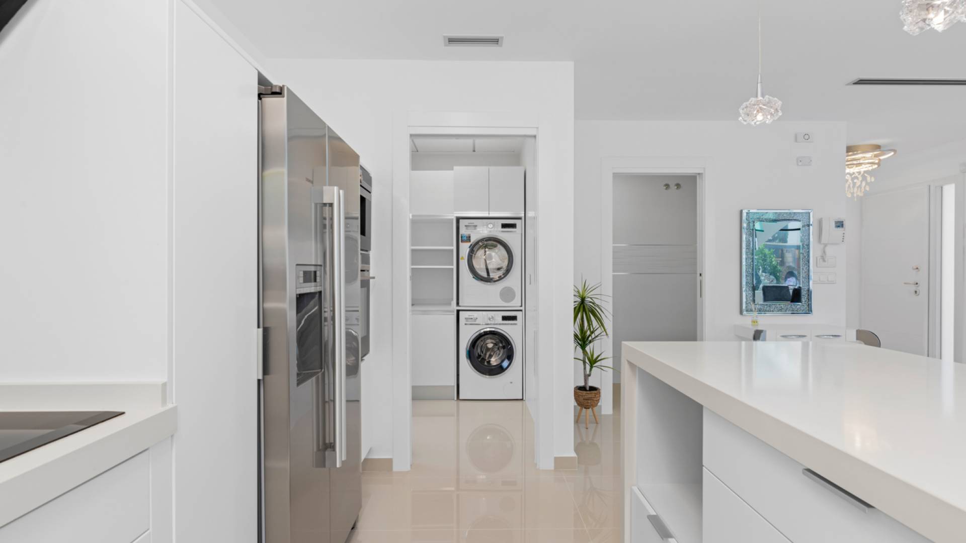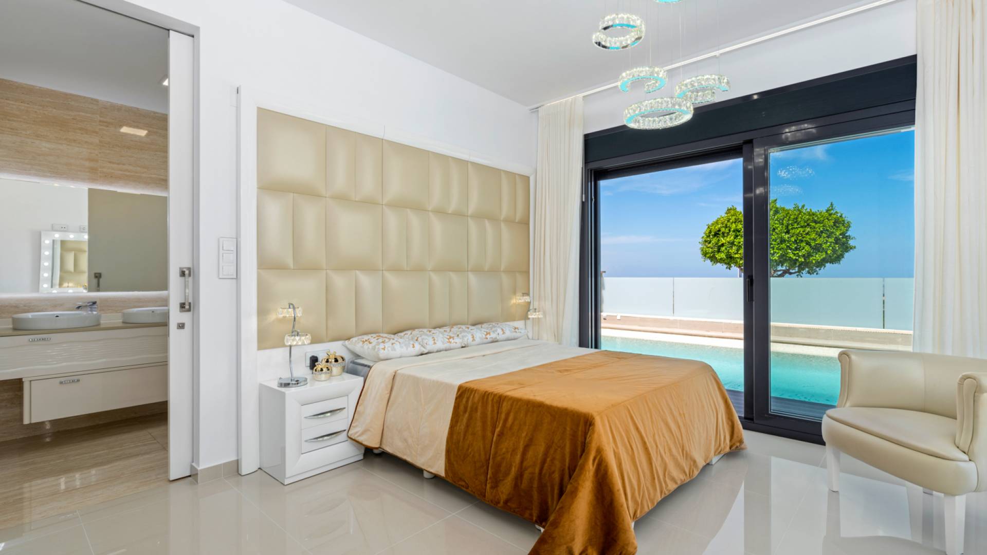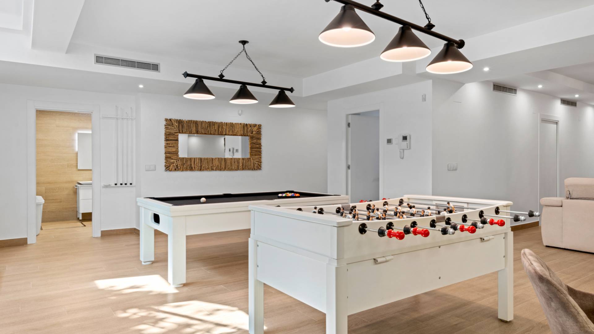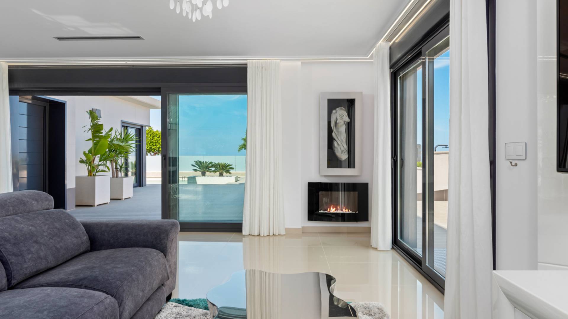Luxury villa with 5 bedrooms and incredible views This recently built luxury property has a total of 5 bedrooms and 4 bathrooms, distributed over two floors and a basement, with a practical elevator that communicates with all the floors of the house and a beautiful glass staircase with interior lighting. In the basement we find a game room (with billiards and table football), a room for celebrations with a full kitchen, 2 bedrooms, 2 storage rooms and a full bathroom. On the main floor we find the living-dining room with an open-concept kitchen and central island, the main bedroom with an en-suite bathroom, as well as a laundry room and a toilet. On the first floor there are 2 spacious bedrooms, 2 bathrooms and access to the balconies. On the top floor we find an incredible 70m2 solarium with impressive panoramic views. EquipmentIt has air conditioning, its own parking for several vehicles, central heating with underfloor heating throughout the house and is for sale furnished with designer furniture and totally equipped, except for personal belongings. The house also has a pellet machine to heat the house, as well as solar panels and an electric water heater. The house includes security windows and doors, with keyed keys, as well as a security system with sensors in all rooms. The equipment is of high quality, including: motorized sofas, brand new mattresses, steam oven with pyrolysis, combo fridge that makes normal and crushed ice. Outdoor spaceIn the garden we find a private pool with waterfall, jacuzzi and hydromassage. The space around the pool is well cared for, decorated with a large amount of vegetation. Next to the pool we find an outdoor shower. Finally, there is also parking for several cars within the plot. AreaResidencial Bellavista is located in one of the areas with the best views of the Costa Blanca. In the municipality of San Miguel de Salinas, just 7 kilometers from the beaches of Orihuela, surrounded by golf courses, the most important shopping center in the area that has all kinds of services, as well as bars, restaurants, shops clothes, supermarkets, etc. This residential is ideal for lovers of nature and tranquility.