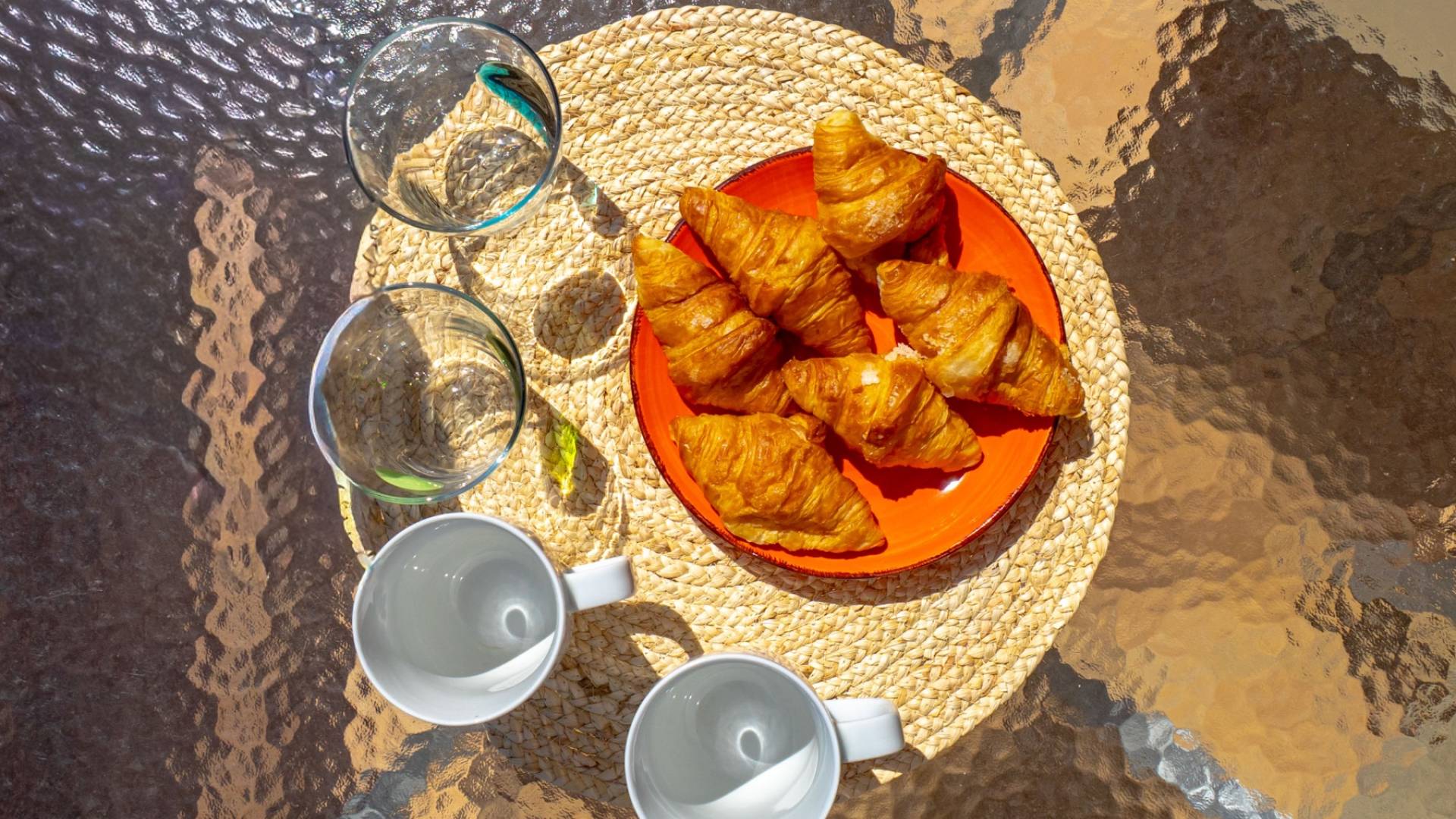 From the living room you can reach the spacious east-facing balcony, where you can enjoy beautiful views of the pool area and the surroundings. Thanks to the open location without direct visibility, you get a wonderful feeling of privacy, and with the awning you can easily create nice shade.