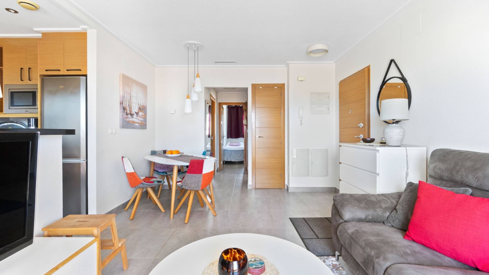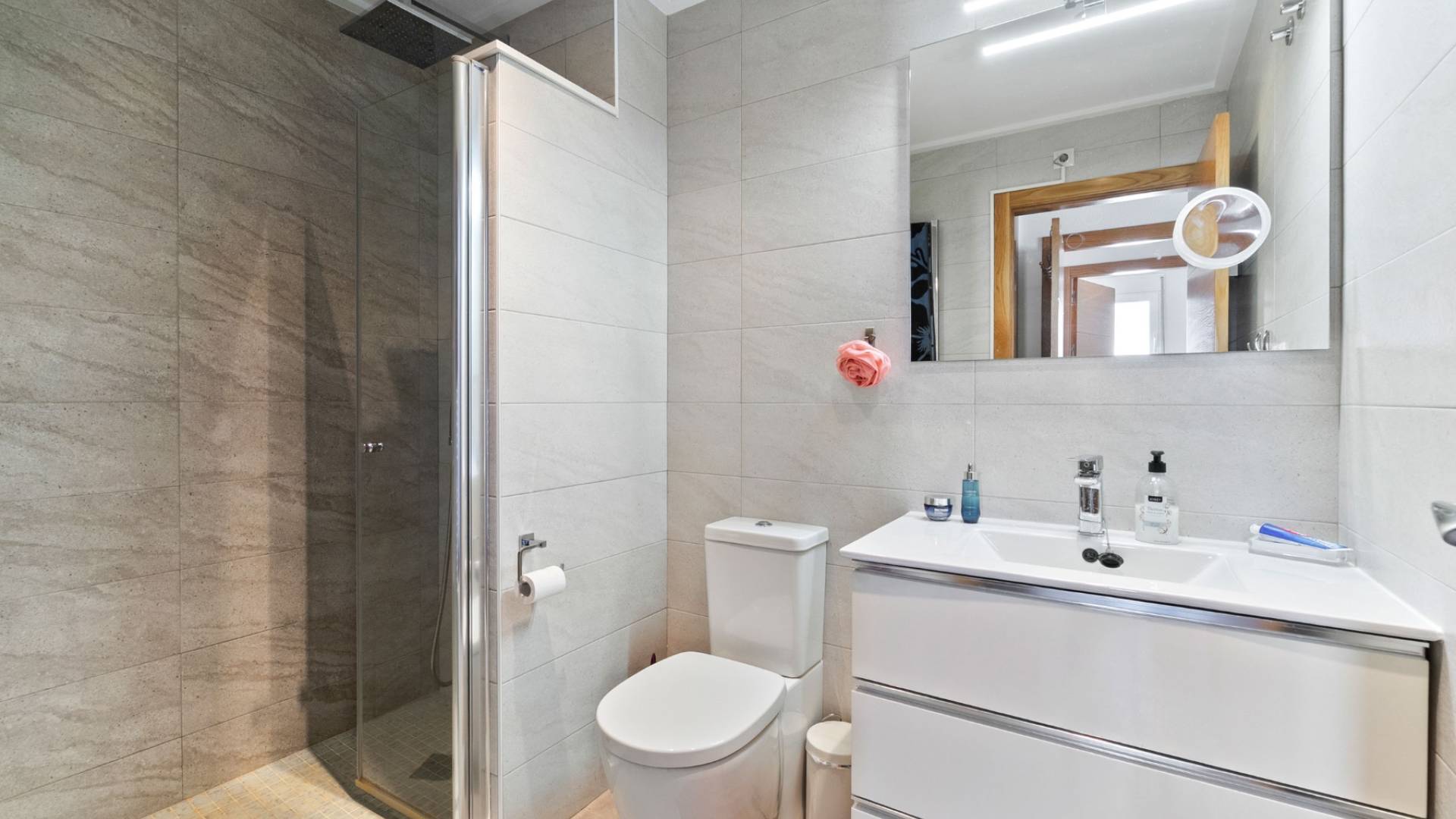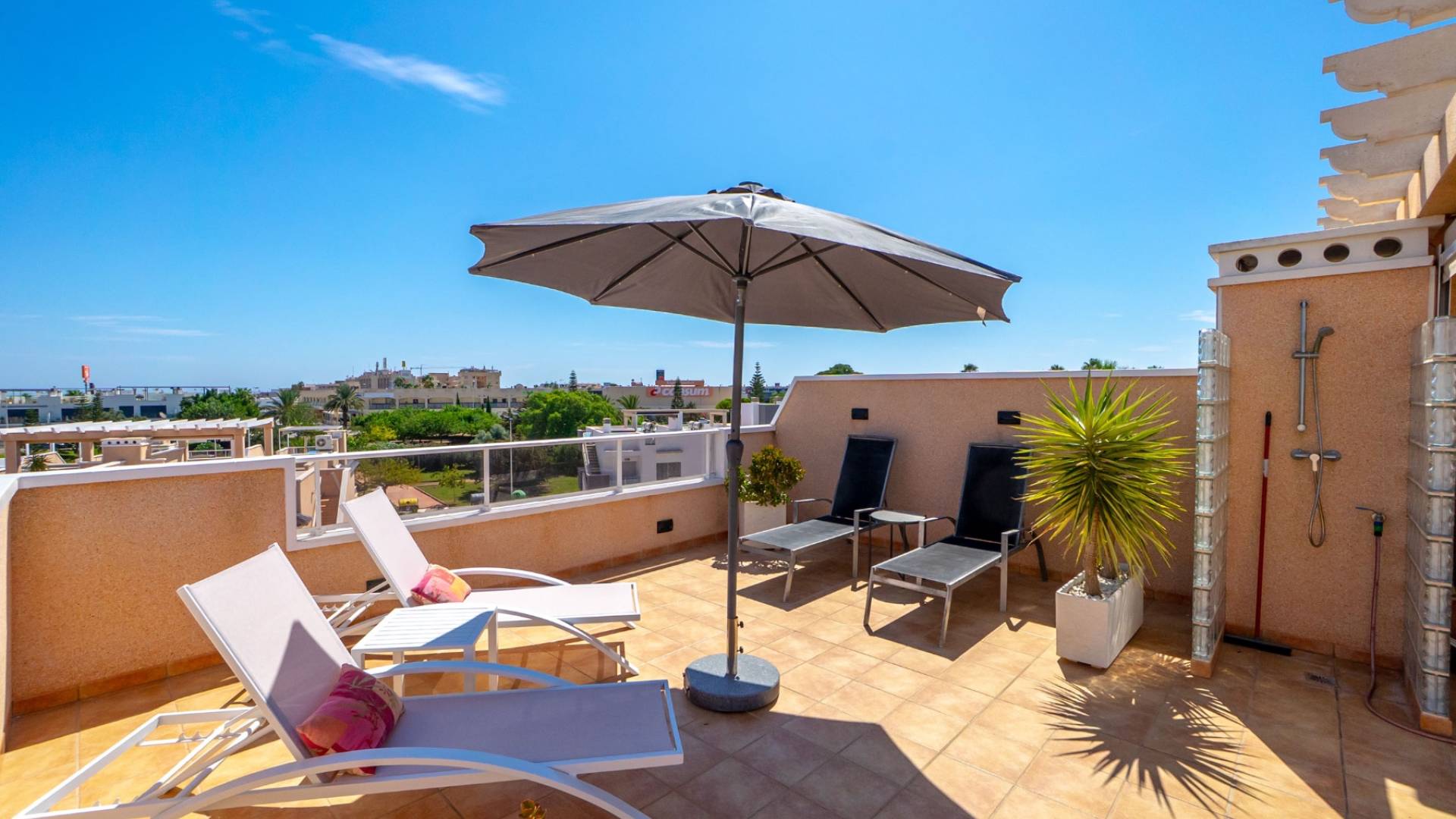 We proudly present this stylish penthouse - a harmonious combination of modern comfort and a warm, pleasant atmosphere. With a fantastic location, you are within walking distance of charming restaurants, shopping and all the services you could wish for. The popular beaches of Punta Prima and Playa Flamenca are just a few minutes away, as are shopping centers and beautiful promenades.