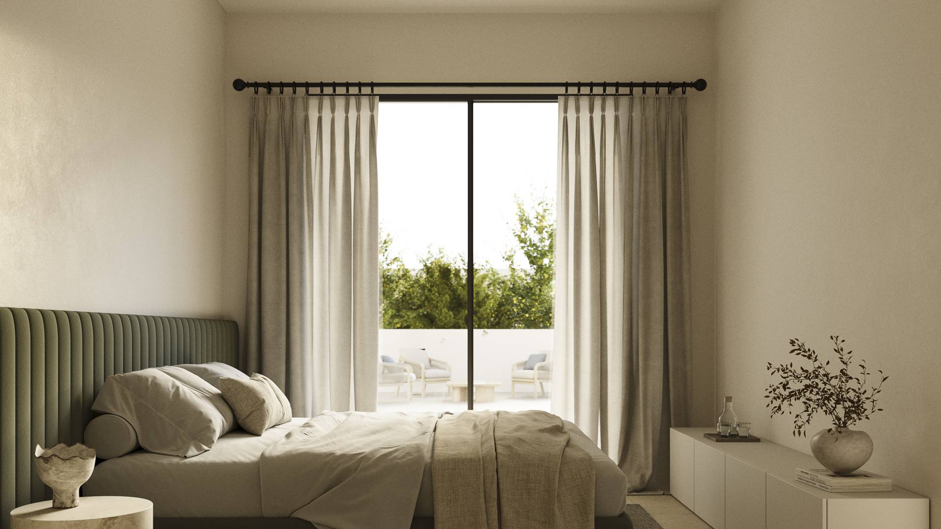 The exterior design of these homes in Polop stands out for its elegance and functionality. Each property features a private garden, perfect for enjoying the Mediterranean climate. Additionally, the homes have a terrace that becomes an ideal space for relaxing or sharing moments with friends and family. The option of a solarium adds an extra touch of luxury, allowing for panoramic views and sun enjoyment all year round. The private pool is an additional attraction, offering a personal oasis to refresh and enjoy the outdoors.