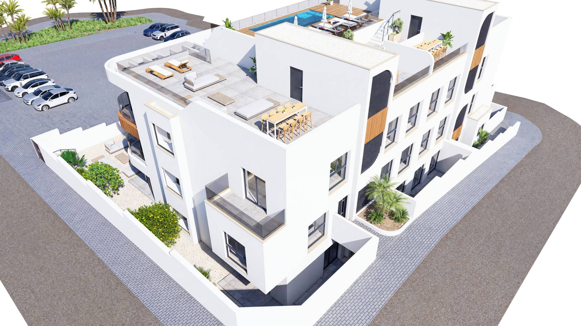 Located in the charming town of Benijófar, this residential complex offers an exclusive selection of nine properties, including apartments, ground floors, and penthouses. Each home has been designed to provide maximum comfort and functionality, catering to the needs of the most discerning residents. The strategic location allows for enjoying a peaceful and well-connected environment, with the airport just 35 kilometers away, facilitating both national and international travel. The properties feature modern characteristics that ensure a comfortable and pleasant living experience.