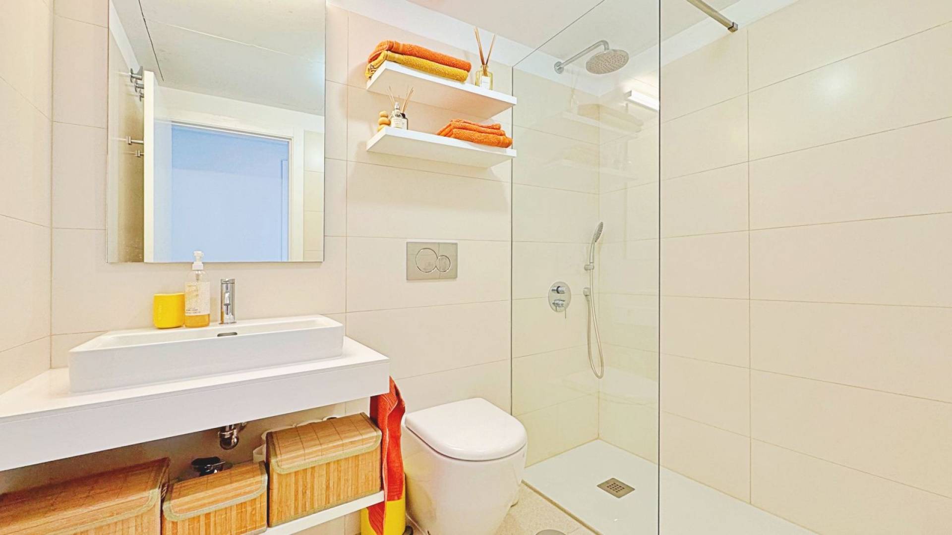 This exclusive penthouse in Mirasal, located in the prestigious Los Balcones area of Torrevieja, stands out for its contemporary design, exceptional brightness and privileged position at the highest point of the residential complex. Thanks to this elevated location, the property enjoys panoramic views over Torrevieja, the Mediterranean Sea and the iconic Pink Salt Lake, one of the most unique natural landscapes on the Costa Blanca. Inside, the penthouse offers a spacious and elegant atmosphere, with a modern open-plan kitchen and a bright living area connected to a generous terrace overlooking the infinity-style swimming pool and landscaped gardens. Large floor-to-ceiling windows create a seamless transition between indoor and outdoor spaces, enhancing the sense of openness and wellbeing. The highlight of the property is its spectacular private rooftop solarium, fully designed for year-round outdoor living. The space includes chill-out areas, an outdoor dining space, a bar area and pergolas, making it perfect for relaxing or entertaining guests. From here, the open views of the salt lake and the entire city of Torrevieja are simply extraordinary. Mirasal is known for its contemporary architecture, large green areas and impressive infinity-style pool. Its location in Los Balcones offers tranquillity, proximity to all services, quick access to sports facilities, supermarkets and natural surroundings, and is just a short drive from Torrevieja’s best beaches. A unique opportunity for those seeking a modern and exclusive penthouse with privileged views in one of the finest residential complexes on the Costa Blanca.