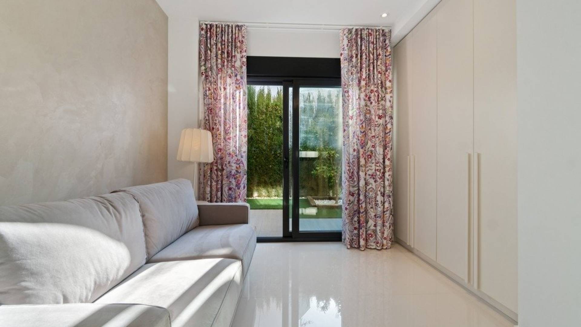 Modern style luxury villa located in Campoamor, only 300 m from the beach. Villa with an area of 200m2, built on a plot of 500m2, the house has 4 bedrooms, 3 bathrooms, living room, kitchen, terrace and solarium of 46m2 with sea views. The outside part has a private pool 8x4. Underfloor heating in the bathrooms, centralized air conditioning installed, parking on the plot. Top quality materials. Heated saltwater pool. It is close to all services, schools, just 10 minutes by car from the largest shopping center in Alicante, Zenia Boulevard, 40 minutes from Alicante airport and a few minutes from some of the best golf courses.
