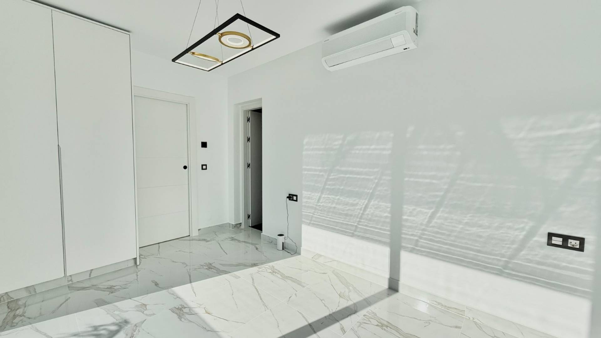 Positioned on one of Ciudad Quesada’s most desirable streets and occupying a privileged corner plot, this fully refurbished detached villa offers a refined blend of Mediterranean charm and sleek contemporary living. Just a short walk from the bustling town centre, the home provides a rare combination of privacy, space and high-end comfort in a sought-after coastal setting. Interior Features Designed with an emphasis on elegance, functionality and modern living, the interior stands out for its quality and attention to detail: 4-5 generous bedrooms, each featuring bespoke fitted wardrobes and high-spec finishes. 4 bathrooms, including three en suite, styled with premium materials and a modern, minimalist aesthetic. A spacious open-plan living and dining area, seamlessly connected to a luxury kitchen equipped with the latest BOSCH appliances. Individually controlled air-conditioning zones, all manageable from a mobile app for effortless climate control. Underfloor heating throughout, ensuring year-round comfort. Integrated smart-home system with electric blinds and intelligent lighting for a streamlined, modern lifestyle. Designer fixtures, carpentry and tiling, creating a cohesive and elegant interior atmosphere. Outdoor Living The exterior of the property is designed to make the most of the Costa Blanca’s exceptional climate: A spectacular 5×10 m private swimming pool with built-in jacuzzi, ideal for relaxing, entertaining or enjoying warm summer days. Low-maintenance Mediterranean garden with ample space for outdoor dining, lounging and social gatherings. A large rooftop solarium, offering open views and a serene setting for sunbathing or hosting guests. Separate, fully equipped laundry room with washer, dryer and storage. Additional Highlights Fully renovated using first-class materials and craftsmanship. Bright, harmonious interior layout with abundant natural light. Prime Location Located just minutes from all amenities—including restaurants, supermarkets and leisure facilities—this villa strikes the perfect balance between convenience and tranquillity. It offers the ideal base for those seeking a sophisticated Mediterranean lifestyle in one of Ciudad Quesada’s most prestigious areas.