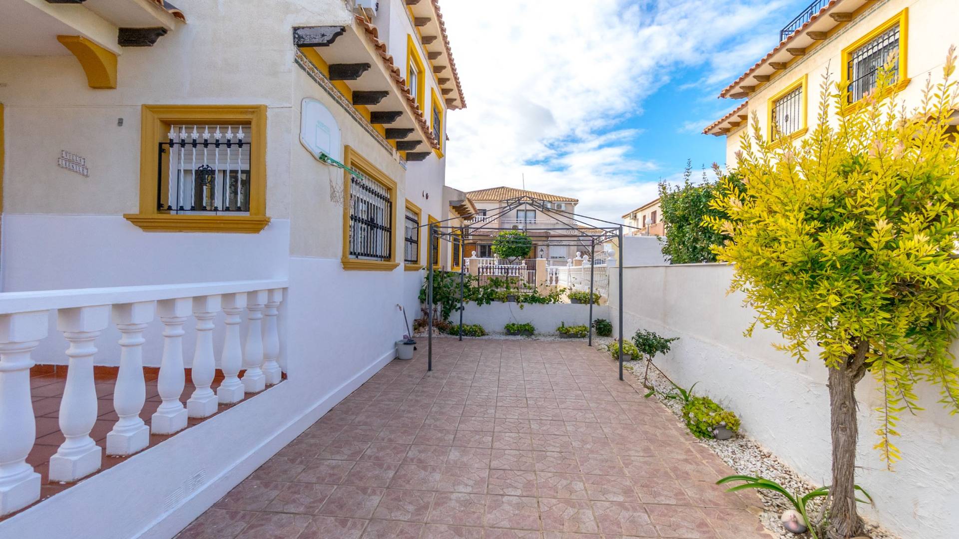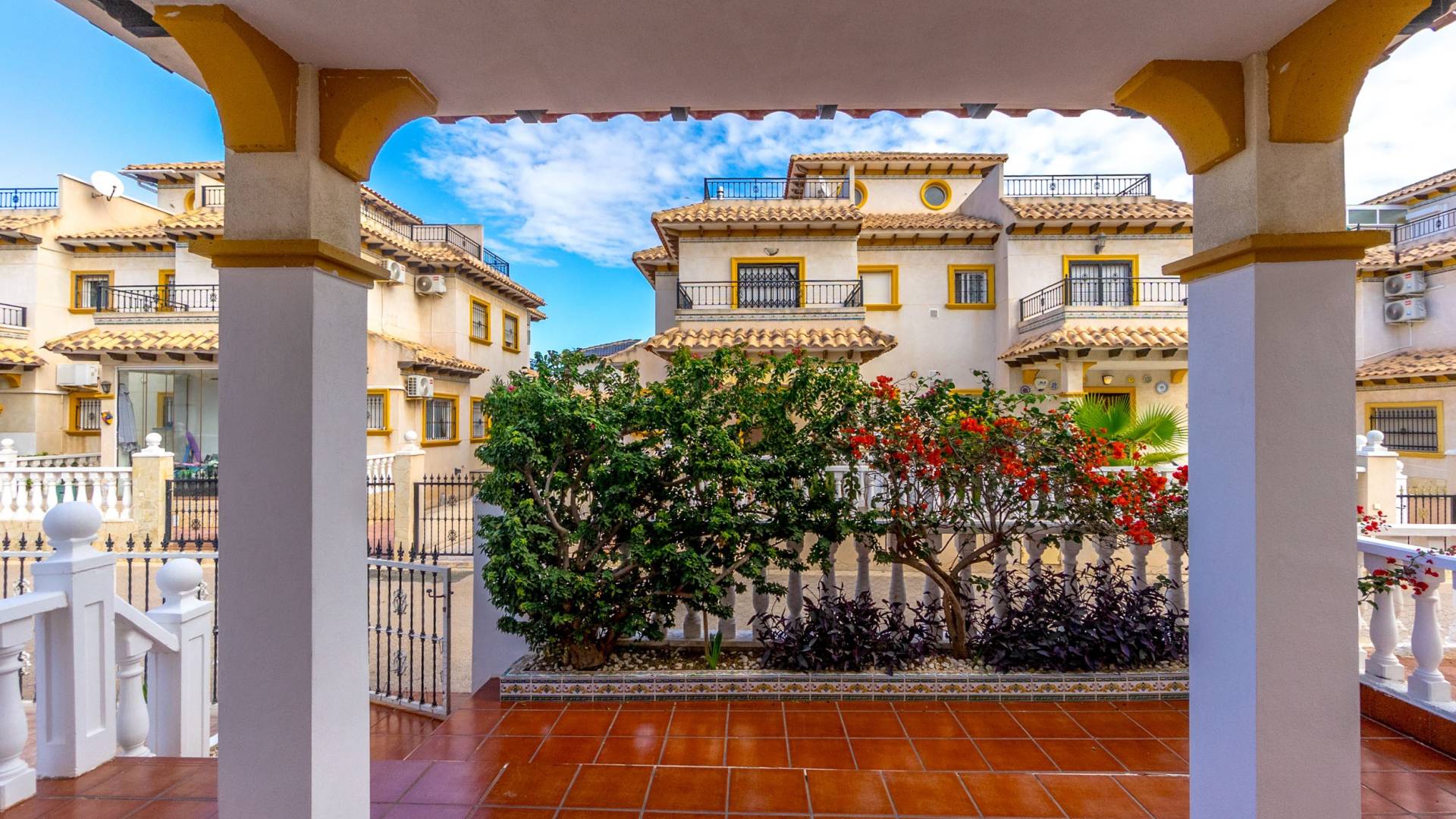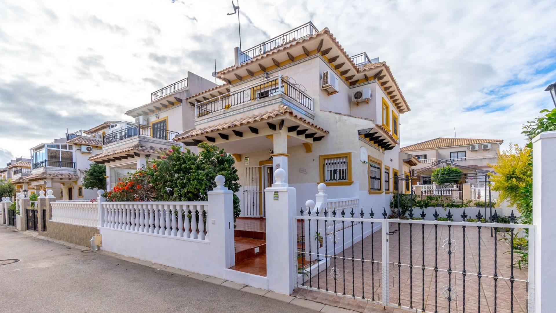 Well-maintained townhouse located in the charming and sought-after area of La Regia Charming townhouse in La Regia with two-three bedrooms, roof terrace, parking space and pleasant urbanization with communal pool. This charming quad house is located in a quiet and pleasant area of La Regia, Cabo Roig, and offers a perfect combination of comfort, generous spaces and proximity to a wide range of amenities and leisure activities. The property is distributed over two floors and has a spacious ground floor terrace with plenty of space for outdoor dining, relaxation and a large private parking area directly on the plot. As you step inside, you are greeted by an inviting open-plan living area where the kitchen, dining area and living room seamlessly flow together. Large windows let in plenty of natural light and create a warm and airy atmosphere. There is also a practical guest toilet on the entrance floor, and for those who wish to have an extra bedroom, there is the possibility of restoring the original third bedroom. Upstairs you will find two spacious bedrooms with built-in wardrobes and a large bathroom with a bathtub. The master bedroom has direct access to a lovely northeast-facing balcony with a pleasant view of the urbanization's private street - a perfect place for your morning coffee or a quiet moment outdoors. At the top, a fantastic roof terrace awaits you with plenty of space for sun loungers, patio furniture and beautiful views of the surroundings. Here you can sunbathe, socialise or simply enjoy the peaceful environment. The urbanization also offers a very nice communal pool surrounded by well-kept green areas, which creates a lovely place to cool off and enjoy the Mediterranean climate. In the immediate area there is a large selection of restaurants, shops and supermarkets, while the beautiful beaches of Cabo Roig and Dehesa de Campoamor are just a few minutes away. Within a short drive you can reach several well-known golf courses and larger shopping centers such as La Zenia Boulevard. Welcome to contact Bjurfors Costa Blanca for more information or to book a viewing! About the Area Metropolitan Cabo Roig is considered by many to be the jewel of the southern Costa Blanca. This peninsula is characterized by smaller coves with rocky and sandy beaches alternately, luxurious villas are mixed with older and charming apartments and townhouses and along the Mediterranean coast there are scenic walks with views all the way to Torrevieja in the north and La Manga in the south. The beaches of Cala Caleta and Cala Capitan have the Blue Flag award for their environmental protection, service, safety and, not least, beauty. The area has a good mix of restaurants in different price ranges, both down by the sea and along the main road N332. There are pharmacies, bakeries, supermarkets and banks within walking distance and the area is characterised by the pleasant mix of housing with smaller homes built in the late 80s/early 90s and the large villas with inviting gardens, several of which have their own private descents directly to the beach. Best of all is the proximity to the sea no matter where in Cabo Roig you stay. The old port of Cabo Roig is well worth a visit. Sailing in all its forms is the main activity here, but other water sports are of course offered during the summer months. The old watchtower - Torre Vigia de Cabo Roig - dominates the peaceful maritime environment and if you want an Instagram-friendly picture from your holiday, you are guaranteed to find it here. Lomas de Cabo Roig is a lively area all year round with a high and beautiful location between the sea and golf as its name; the hills of Cabo Roig indicates. Here you are close to everything you need and the area has many permanent residents and a good mix of nationalities. Lomas de Cabo Roig has grown rapidly in recent years with a lot of newly produced homes and a new shopping center with restaurants, grocery stores and other services. Most of the homes have nice views of the Mediterranean Sea and La Manga del Mar Menor and there are many green areas around. Local Services Inland towards Villamartin you have a solid selection of bars and restaurants where the La Fuente shopping center is located about 2 km in which is well visited, regardless of the time of year. Towards the sea you will find the Cabo Roig strip which offers good nightlife and Campoamor stands for the slightly more luxurious eateries, with several beach clubs in the summer. Within a radius of 5 km there are 4 fine 18-hole golf courses; Villamartin, Las Ramblas, Campoamor and Las Colinas, all of which are of a good standard.