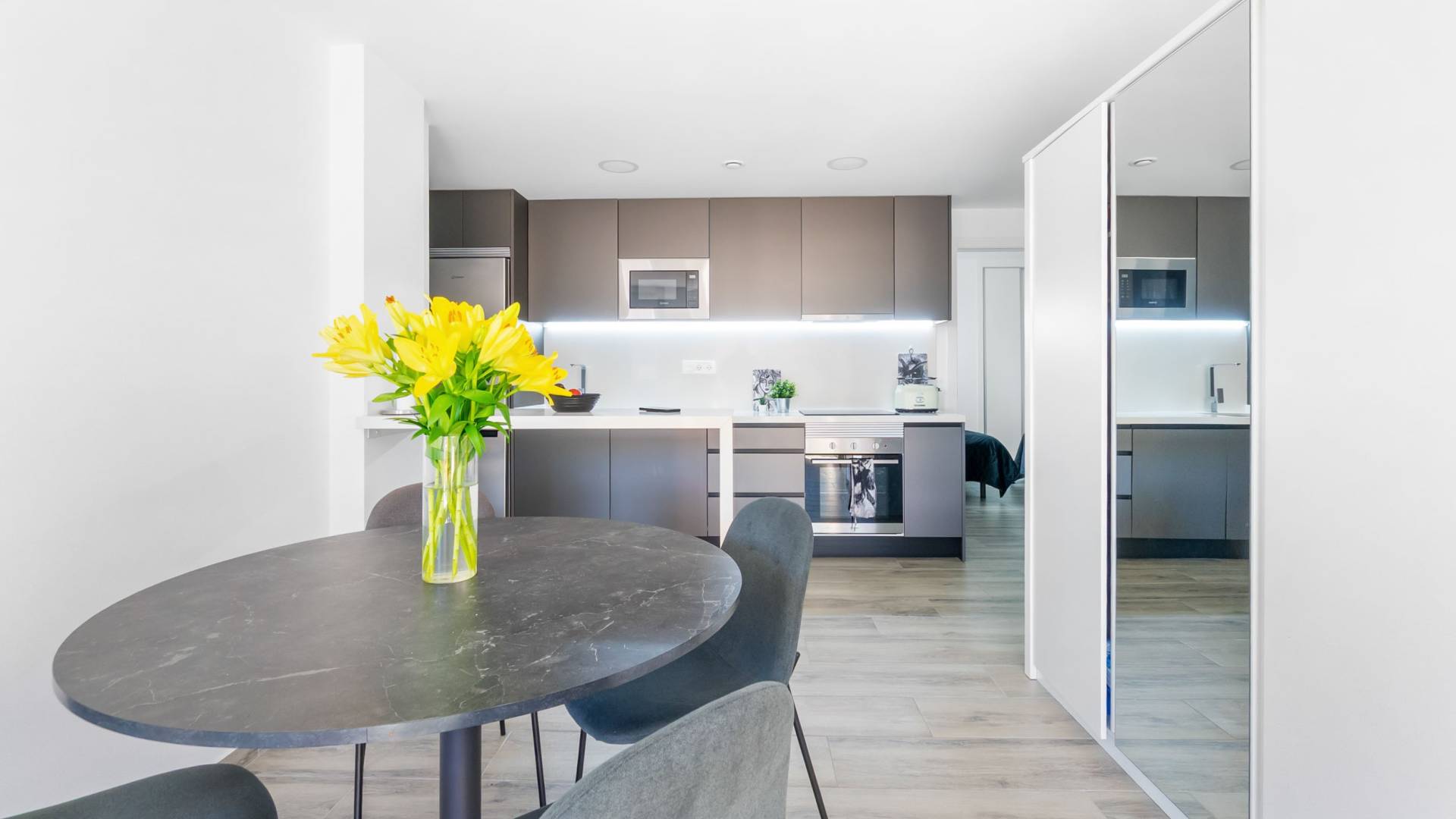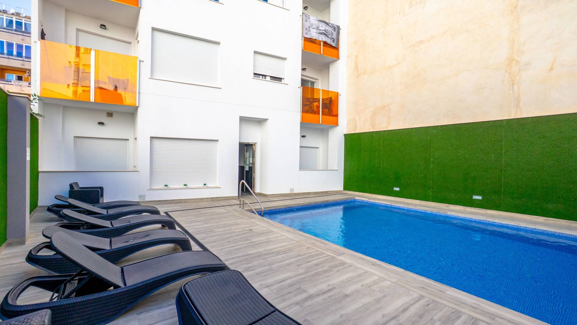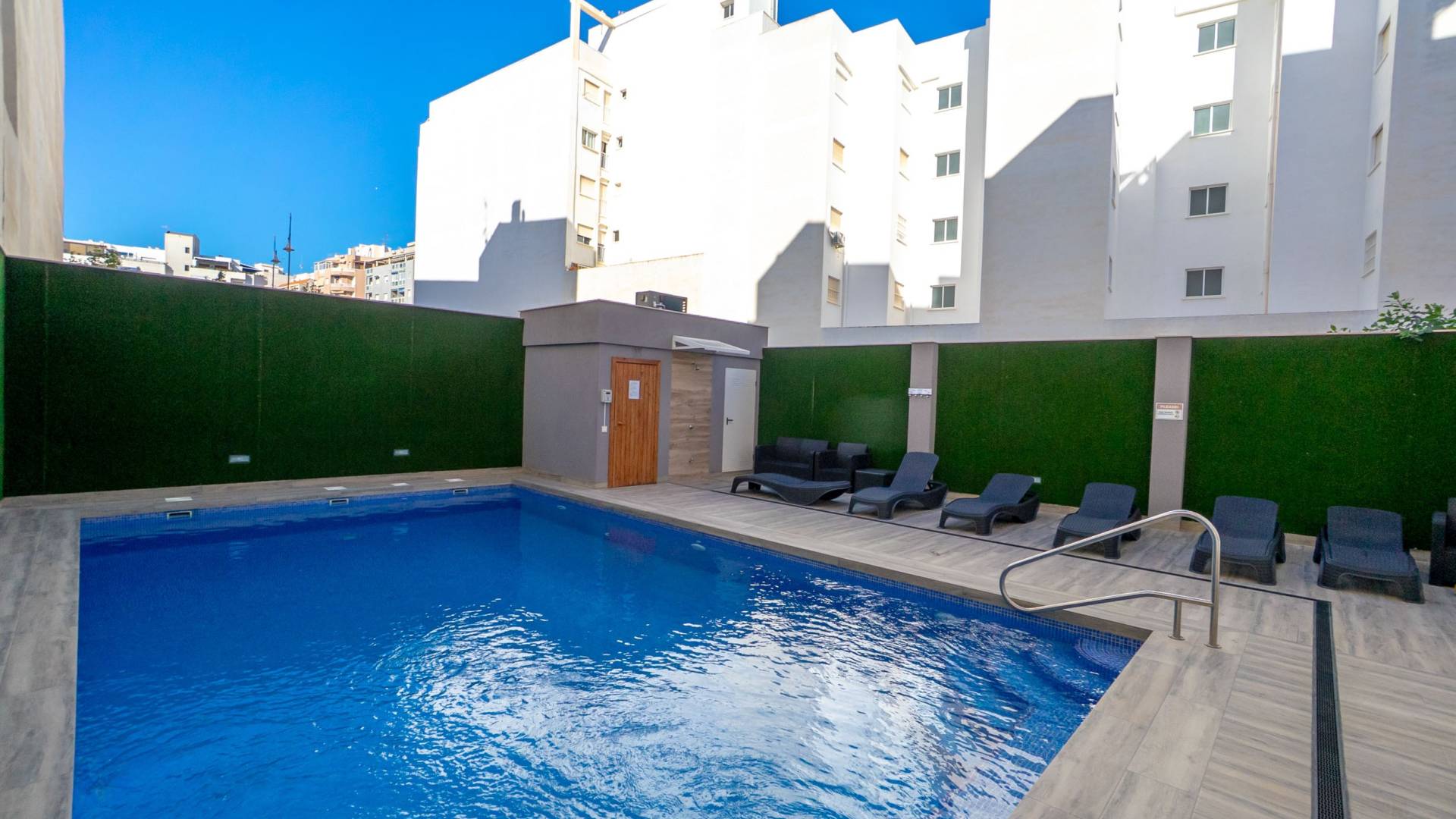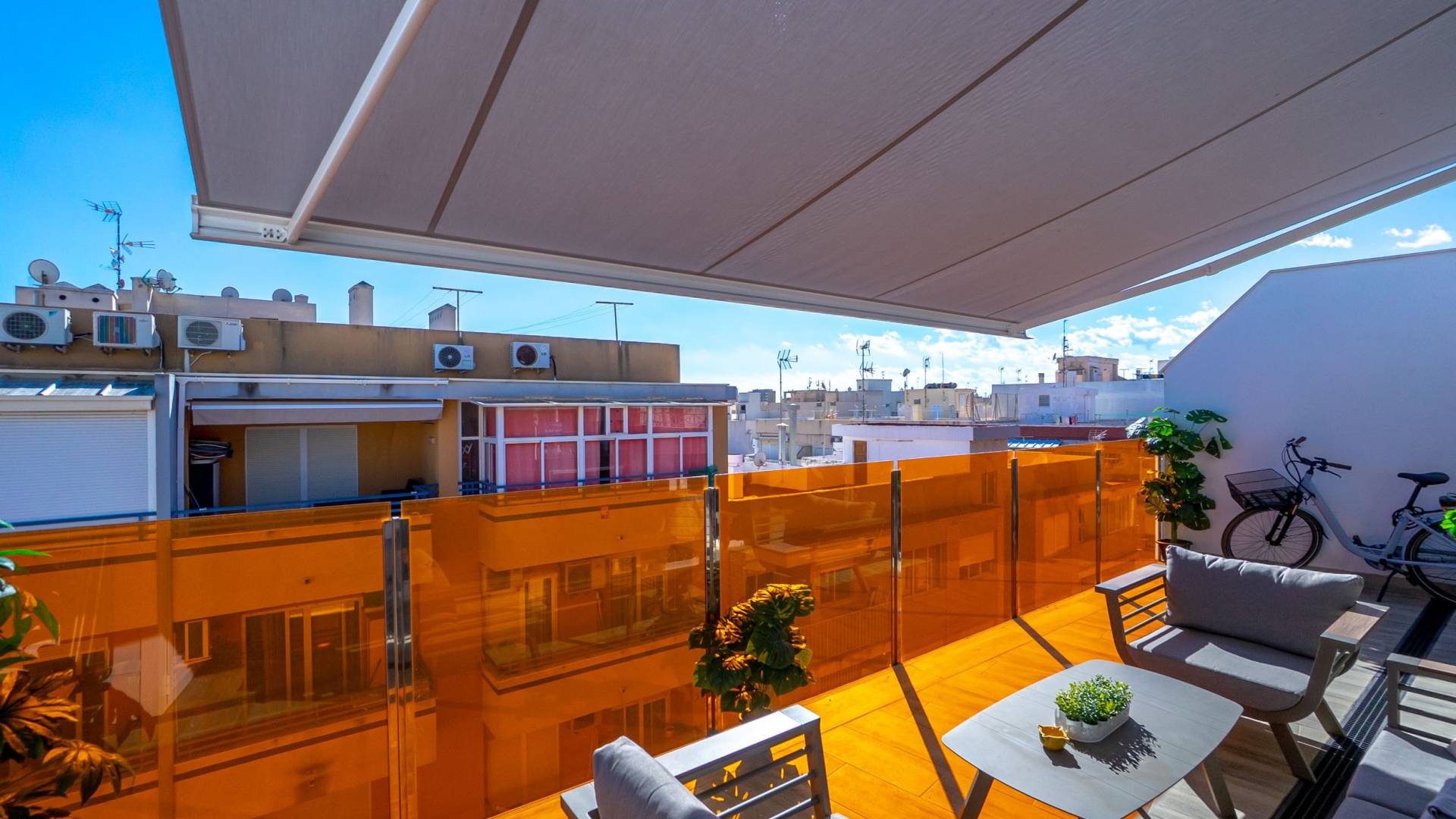 Stylish penthouse 350 m from Playa del Cura, Torrevieja Fresh home in new condition with two bedrooms, two bathrooms, balcony and private roof terrace with sea views. Welcome to this fantastic home in Edificio Alegria XVII, a modern and sought-after residence in central Torrevieja where the city pulse meets the Spanish sun. The location is absolutely excellent. Here you live in the heart of Torrevieja with everything you could want within a few minutes' walk - restaurants, cafes, shops, grocery stores, pharmacies and the bus station. Just a few blocks away is the popular Playa del Cura, one of the city's most beloved beaches, where you can start the day with a swim in the sea or a walk along the promenade. The apartment is located on the fifth floor of a building built in 2023, with an elevator and all the amenities that come with a newly built house. The apartment is in new condition with thoughtful material choices, stylish design and a pleasant atmosphere that makes it easy to feel at home. When you step inside, you are greeted by a bright and open floor plan where the living room and kitchen flow together in a harmonious way. The modern kitchen is fully equipped and integrated in an elegant way that invites both cooking and socializing. Light flows in through large windows, and the eye is immediately drawn to the spacious balcony with its characteristic orange railing - a splash of color that has become a hallmark of the house. The balcony has a perfect southerly orientation and offers sun from morning to evening. There is plenty of space here for a dining group, plants and relaxation, and thanks to the awning you can easily create coolness during the hottest hours. From one of the two bright and relaxing bedrooms you can reach directly out to the balcony - a lovely detail that extends the room and gives an extra feeling of space. There are also two modern and stylish bathrooms with a shower, one of which is en suite and creates a feeling of extra comfort and privacy. Via a staircase from the balcony you take you up to the home's impressive private roof terrace of 68 m2. Here you will find your own paradise in the sun - completely private despite its central location. The terrace is equipped with an outdoor shower and outdoor kitchen, perfect for long summer days and social evenings with family and friends. The view over the city's rooftops and the sparkling Mediterranean Sea makes the experience complete. There is space for lounge furniture, sun loungers, a barbecue and a dining table - everything you need to create your own oasis in the heart of Torrevieja. The inviting pool area on the ground floor offers sunny social areas with space for relaxation and socializing, complemented by a modern sauna for extra everyday luxury. In addition to the private terrace, the property also has a shared roof terrace with barbecue facilities for the residents - a social place where you can enjoy lovely evenings under the Spanish sky. This is a residence that combines the best of two worlds - the conveniences of the city and the relaxing Mediterranean feel - and is perfect for both permanent residence and holiday home. Living in Torrevieja Center The most famous resort town south of Alicante is Torrevieja, which has been transformed from an old fishing village into a modern medium-sized town in the last few decades. With more than 100,000 inhabitants, Torrevieja has doubled its population over the past 30 years. In addition to fine sandy beaches, bays and beautiful beach walks, there is a large selection of shops, restaurants and bars as well as a rich nightlife. Torreviejas' center is contemporary and modern. It is located in front of the beach and the marina of the city. The Plaza de la Constitucion is the main axis of the center, where the town hall and the church of the Immaculate Conception are located, built with the stone of the Old Tower, from which the name of the city comes. Near the square is the Torrevieja Casino, built in 1896 and in a modernist style, where the facade with a neon-Nazari canopy stands out. It is one of the most popular terraces for Torrevejenses and tourists. Around the square are the most commercial streets of the city and the museums. You can visit the food market, known as "La Plasa", a good place to buy fresh products from the sea and the orchard of Bajo Segura; and the Museum of the Sea and Salt, the most important in the city because it reflects its origins and the importance of salt in its history. Torrevieja is located 36 km south of Alicante Airport and people from all over the world have been attracted here for various reasons, primarily the healthy climate with 320 days of sunshine a year, but also the opportunities offered by a multicultural tourist paradise. Here is everything you could need to live and live all year round and although there are many foreign residents here, it is still a bustling Spanish city with narrow streets and several small squares. In the northern part of Torrevieja, lies Torre La Mata which boasts its long promenade lined with restaurants and nightclubs. Here you live with direct proximity to the city, but do not have to be in the heaviest pulse. Here we can offer all types of housing in all possible price ranges. The northern part of Torrevieja really has something for everyone! South of the city after Mar Azul lies the bay of Cala Ferris; which offers a nice contrast to everything around. Framed by palm trees with small golden dunes, this is a place to enjoy a quiet swim in the crystal clear waters or something to drink at Restaurante Ferris with the terrace right next to the sea's rippling waves. Do you have any questions regarding selling or buying property in Torrevieja? Do not hesitate to contact our real estate agents in Torrevieja, and they will be delighted to assist you.