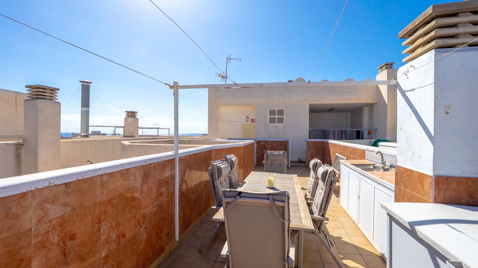 Penthouse with garage in the center of Torrevieja just 200 m from Playa del Cura Inviting apartment with two bedrooms, one bathroom, private lockable garage and storage room as well as a roof terrace with beautiful sea views. Discover this unique opportunity to acquire an exclusive penthouse located on the fifth floor, right in the heart of Torrevieja - on the attractive C/ Caballero de Rodas, just two hundred metres from the sea. Here you live with the vibrant life of the city just outside the gate, while at the same time being able to retreat to a home that offers comfort, style and a private oasis in the sun. Restaurants, cafes, shops, supermarkets and pharmacies are just around the corner. The charming promenade with its bars and outdoor cafes is just a few minutes away, as is Playa del Cura which attracts with its fine sandy beach and crystal clear water. Here you live a comfortable life without the need for a car - everything you could want is within easy walking distance. The home itself is well-planned and consists of two bedrooms, both with built-in wardrobes and generous light. The separate kitchen is fully equipped and offers plenty of work surfaces and storage - perfect for those who enjoy cooking at home. The bathroom is fresh and functional with a shower and everything you need for a comfortable everyday life. From the living room you reach the spacious balcony - an ideal place for your morning coffee or to let the gentle sea breeze sweep in. The absolute highlight of the home is the impressive private roof terrace, which is accessed via a staircase directly at the front door. The terrace is a full forty-six square meters in size and offers sun almost all day long thanks to its excellent location. Here you can enjoy an unobstructed and expansive view of the city's rooftops and the sparkling Mediterranean Sea. The terrace is thoughtfully planned with an outdoor kitchen area - perfect for long summer evenings with barbecue dinners and socializing - as well as plenty of space for sun loungers, a dining table and relaxation. The storage solutions are generous and can accommodate everything from parasols and cushions to leisure equipment - an everyday luxury that keeps everything organized and easily accessible. A big plus with this home is the private garage with lockable door, which is easily accessible via a car lift directly from the street. In addition, there is a spacious storage room adjacent to the garage - an invaluable advantage in the city center where parking and storage space can otherwise be in short supply. Here you can safely and easily store your car, bicycles, beach equipment or anything you don't want in the home. As an added peace of mind for future owners, both the air conditioning, refrigerator and water heater are brand new and recently installed. This penthouse is a perfect combination of central city life, a seaside feel and the luxury of privacy - a home that is just as suitable for those looking for a permanent residence in the sun as for those who want an exclusive holiday home with a high standard and unbeatable location. Contact us at Bjurfors Costa Blanca today for more information or to book a viewing! Living in Torrevieja Center The most famous resort town south of Alicante is Torrevieja, which has been transformed from an old fishing village into a modern medium-sized town in the last few decades. With more than 100,000 inhabitants, Torrevieja has doubled its population over the past 30 years. In addition to fine sandy beaches, bays and beautiful beach walks, there is a large selection of shops, restaurants and bars as well as a rich nightlife. Torreviejas' center is contemporary and modern. It is located in front of the beach and the marina of the city. The Plaza de la Constitucion is the main axis of the center, where the town hall and the church of the Immaculate Conception are located, built with the stone of the Old Tower, from which the name of the city comes. Near the square is the Torrevieja Casino, built in 1896 and in a modernist style, where the facade with a neon-Nazari canopy stands out. It is one of the most popular terraces for Torrevejenses and tourists. Around the square are the most commercial streets of the city and the museums. You can visit the food market, known as "La Plasa", a good place to buy fresh products from the sea and the orchard of Bajo Segura; and the Museum of the Sea and Salt, the most important in the city because it reflects its origins and the importance of salt in its history. Torrevieja is located 36 km south of Alicante Airport and people from all over the world have been attracted here for various reasons, primarily the healthy climate with 320 days of sunshine a year, but also the opportunities offered by a multicultural tourist paradise. Here is everything you could need to live and live all year round and although there are many foreign residents here, it is still a bustling Spanish city with narrow streets and several small squares. In the northern part of Torrevieja, lies Torre La Mata which boasts its long promenade lined with restaurants and nightclubs. Here you live with direct proximity to the city, but do not have to be in the heaviest pulse. Here we can offer all types of housing in all possible price ranges. The northern part of Torrevieja really has something for everyone! South of the city after Mar Azul lies the bay of Cala Ferris; which offers a nice contrast to everything around. Framed by palm trees with small golden dunes, this is a place to enjoy a quiet swim in the crystal clear waters or something to drink at Restaurante Ferris with the terrace right next to the sea's rippling waves. Do you have any questions regarding selling or buying property in Torrevieja? Do not hesitate to contact our real estate agents in Torrevieja, and they will be delighted to assist you.