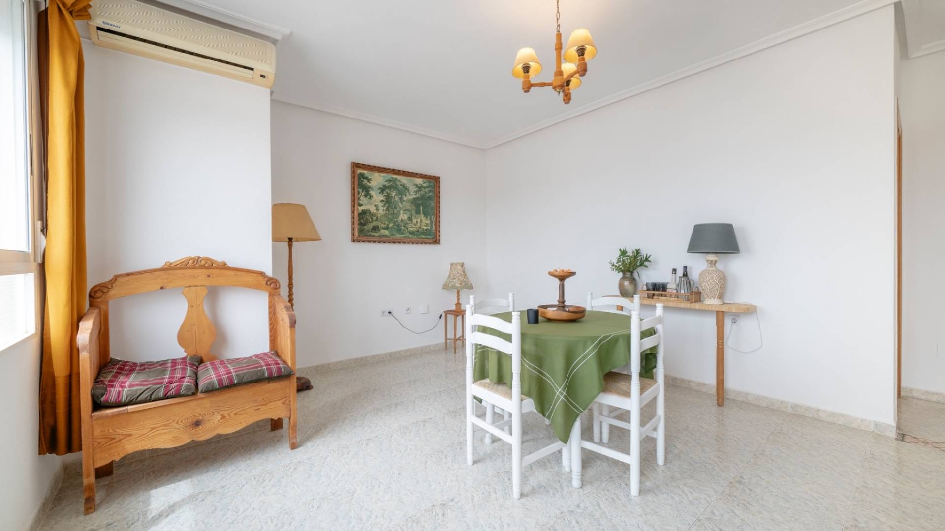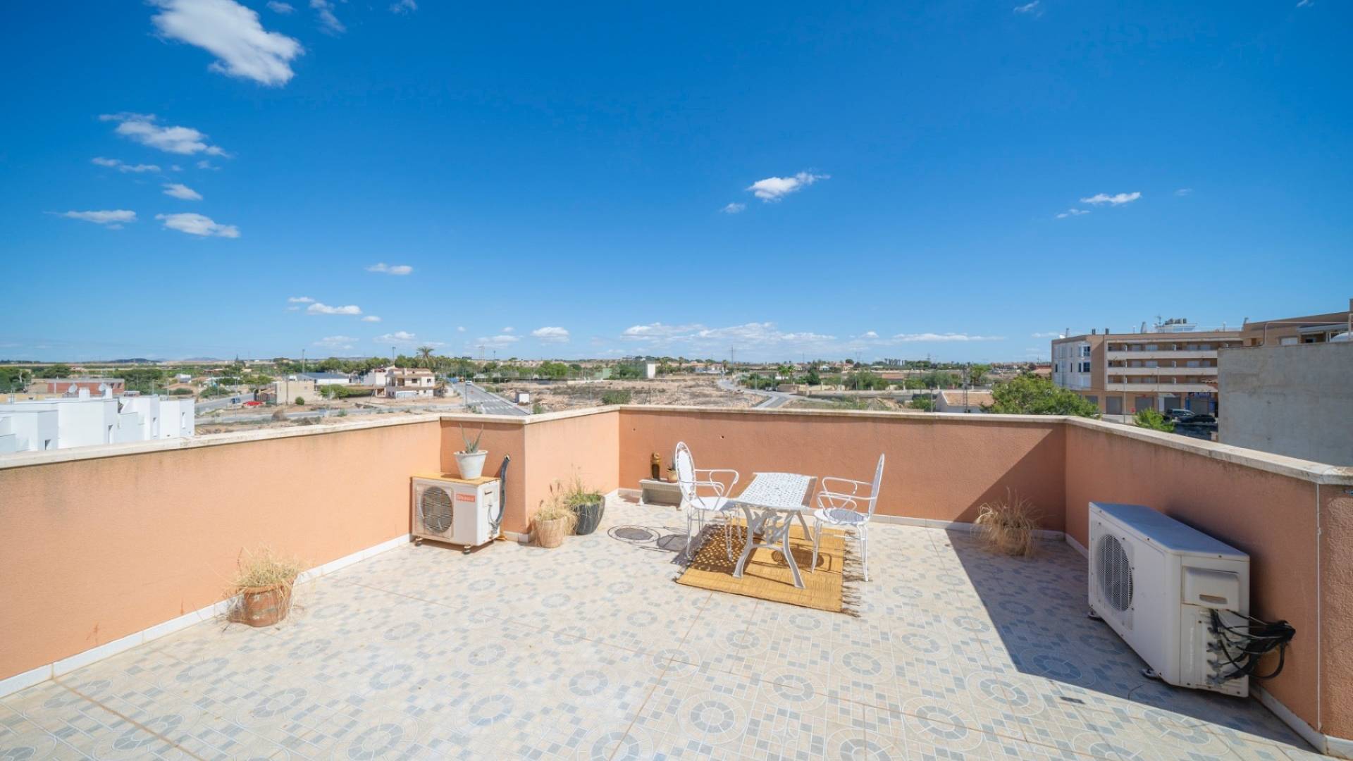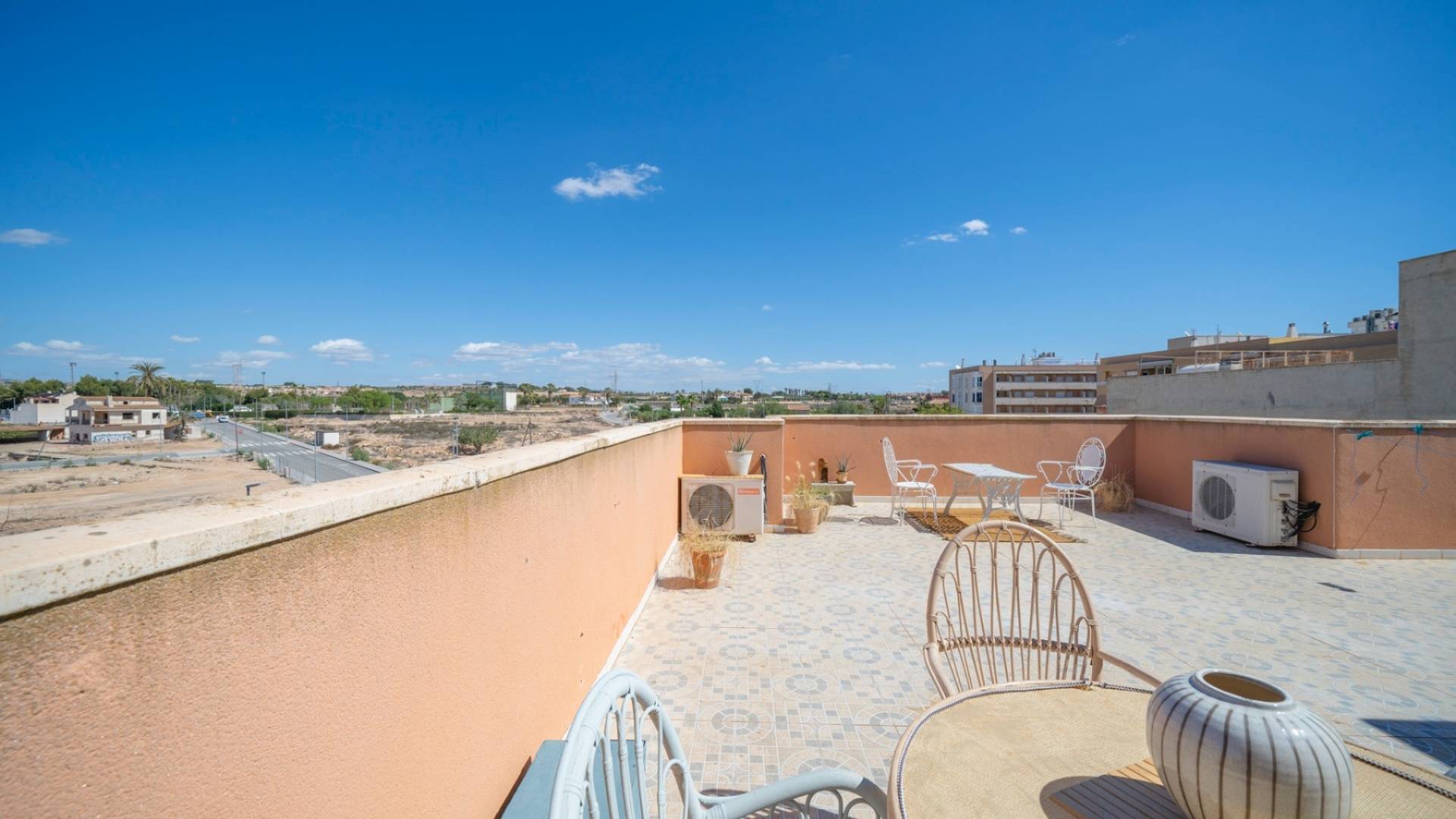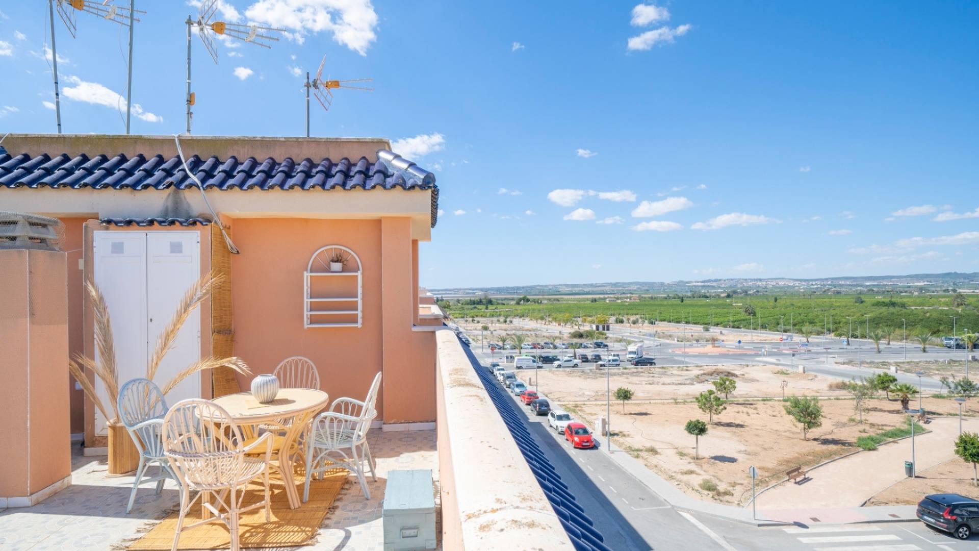 Bright second floor apartment with roof terrace in Los Montesinos Charming apartment with solarium, three bedrooms and one bathroom in Los Montesinos, Alicante. We present this charming seventy square meter apartment, located on the second floor of a building without an elevator with only four apartments - an accommodation that offers peace and privacy. The property has a bright living room with an open plan to the kitchen, three bedrooms and a fully equipped bathroom with shower. It is being sold fully furnished, just like in the pictures - ready to move in and perfect for renting out too. Thanks to its west-facing location, the apartment receives plenty of natural light during the afternoon and has an unobstructed view, which gives a lovely feeling of space. Central location in Los Montesinos, only a five-minute walk to the square and close to all services: supermarkets, shops, restaurants, health center, schools and leisure activities. There is also access to a communal rooftop solarium, shared with only one other apartment. An ideal place to enjoy the outdoors - sunbathing, spending time with family and friends or creating a small urban garden. An excellent opportunity for those looking for a permanent residence, holiday apartment or investment in one of Vega Baja's most pleasant resorts. Los Montesinos is a genuine small town in the heart of Vega Baja del Segura, Alicante. Surrounded by agricultural fields and close to the La Mata and Torrevieja Lakes Natural Park, the village offers rural peace combined with proximity to the Costa Blanca's most popular tourist destinations. With a welcoming and growing population, there is a good range of services here: supermarkets, restaurants, traditional bars, health centre, pharmacy, schools and everything you need in everyday life. The strategic location - only ten minutes by car to Torrevieja and its beaches, as well as the proximity to the AP-7 - makes this an attractive residence both permanently and for holidays. The resort is known for its quiet, family-friendly and safe atmosphere. Local festivals, cultural events and markets are held throughout the year, giving residents the opportunity to experience a genuine, Mediterranean lifestyle. The proximity to nature, hiking and cycling trails, and the mild and sunny climate all year round make Los Montesinos an excellent choice for those looking for quality of life in an authentic and well-connected environment. Contact Bjurfors Costa Blanca to book a viewing! Living in Los Montesinos Los Montesinos which is located only 15 minutes from Torrevieja is considered a quiet and genuinely Spanish village that lives all year round. It's a village with lots of charm and a nice plaza in the middle of it all where the inhabitants gather to grab a bite or just to take a drink in the sun. Besides that, you have all the daily service you need within walking distance. The village is completely surrounded by orange and lemon tree plantations. La Finca Golf, where you can perform various sports activities, such as golf, tennis, paddle etc. is not far away and if you prefer something cultural there is always the Castle of Montemar whose views can be enjoyed. Los Montesinos connects quick and easy with the N-332 national road and the AP7 motorway making sure the beaches in Torrevieja, Guardamar and Orihuela Costa are no more than 10-15 minutes away by car. Do you have any questions regarding selling or buying property in Los Montesinos? Do not hesitate to contact our real estate agents in Alicante or Torrevieja, and they will be delighted to assist you.