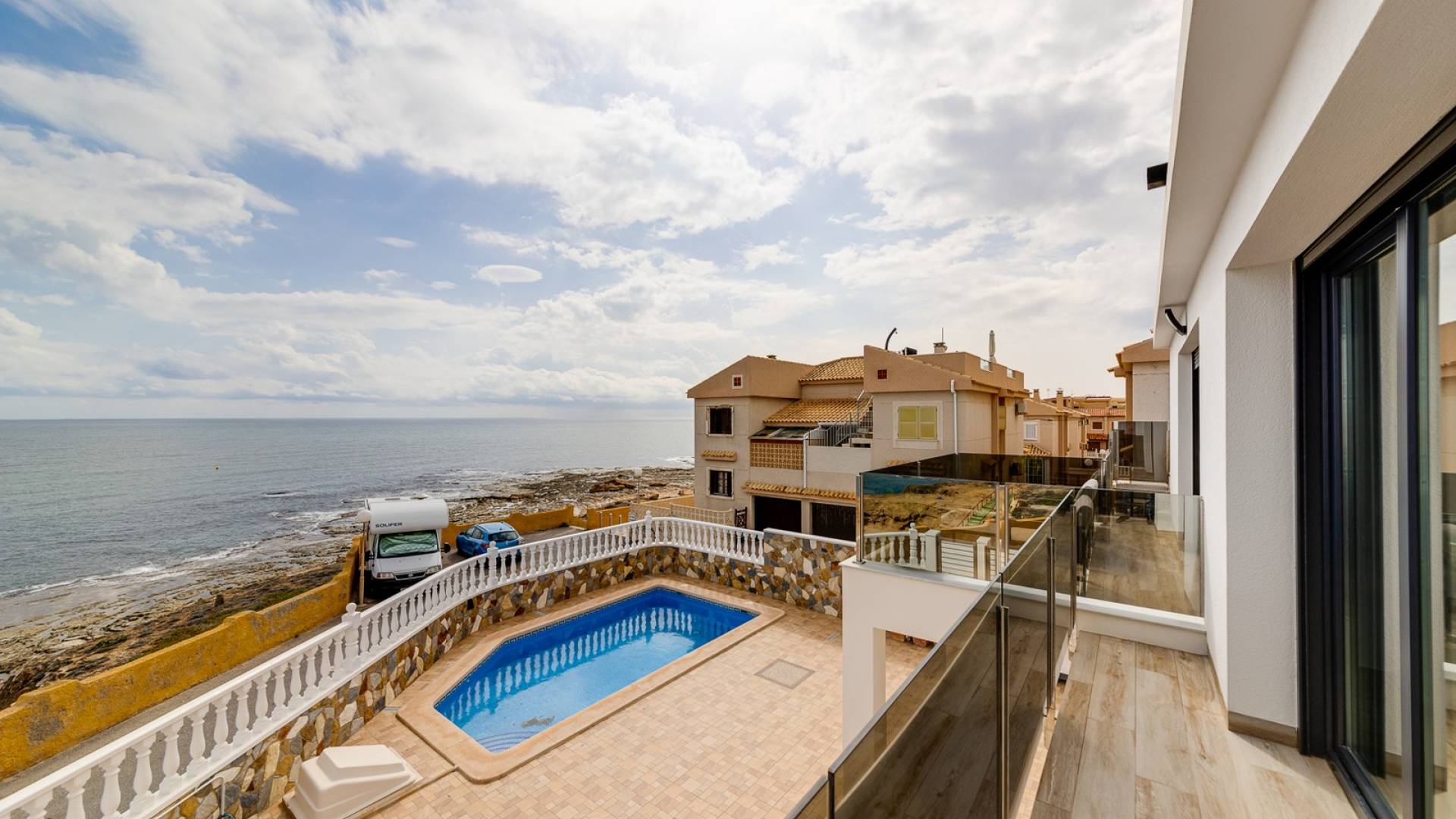 Renovated villa by the sea in La Mata Completely renovated villa with four bedrooms, private pool and the Mediterranean Sea as a neighbor in La Mata. Bjurfors Costa Blanca presents La Perla de Cabo Mar, a fantastic villa with an outstanding location close to the sea and the beautiful La Mata beach. It is a completely renovated property of approx. 210 built-up square meters distributed over two levels that stands on a plot of 324 square meters. The ground floor has an open plan between the kitchen, dining room and living room, from where you have direct access to the large terrace that surrounds the house and the private pool area. On this floor there is also a spacious bedroom with built-in wardrobe and en-suite bathroom, as well as a guest toilet. The first floor can be accessed via the internal staircase and there you will find three spacious bedrooms, all with fitted wardrobes and bathrooms. There is another room, which can be used as an additional living room, office or a fifth bedroom. Up the stairs you reach the sunny roof terrace where you have plenty of space for terrace furniture, deckchairs, jacuzzi and of course a breathtaking view of the Mediterranean Sea. In the surroundings you will find several nice restaurants, shops and supermarkets. Within a short drive you can reach several golf courses such as La Marquesa golf or Villamartin golf, several shopping centers such as Habaneras and the city center. The beautiful beach of La Mata can be reached within a few minutes' walk. Welcome to contact Bjurfors Costa Blanca for more information! Living in La Mata La Mata beach begins in the Torreblanca area in the south and ends with La Mata village in the north. It has always been an attractive area for Swedes and Scandinavians and it is easy to understand why. As early as the 1970s, Skanska began to build housing for Swedes here and the trend has continued. Of course, there are also other nationalities in the area and it is a good mix of holiday and permanent housing. Here is something for everyone - everything from a small one-bedroom holiday apartment to a large luxury villa. In the summertime, Torreblanca and La Mata also attract Spaniards from within the country who flee the heat - the number of inhabitants increases significantly. In addition to being a very nice and quiet area, it is also practical and comfortable. It is within walking distance to the beach, restaurants, shops and a shopping center with many shops. There is all kind of service you need to be able to live here and if you are looking for more life and movement you have reached Torrevieja center in half an hour walk. There are also several different bus lines to get to and from town. The two and a half kilometer sandy beach is bordered by various restaurants and bars. Most are open year-round. The beautiful beach invites you to many activities and you can also walk along the pleasant promenade which takes you several miles north towards Guardamar as well as south towards the town. Along the walk is the nature reserve of Las Dunas de La Mata, which means La Mata's sand dunes. It has a wooden promenade that reaches the coves of Cabo Cervera, where all the leisure and dining options are concentrated, with numerous bars, restaurants and beach bars. Parque Aromatico is also a popular walking area. Adjacent from Torreblanca is Aguas Nuevas where we find, among other things, the large sports center in Torrevieja. Here you will still find relatively affordable new production, with excellent communications into the city. Much of the charm of what is another of the best areas of Torrevieja is its impressive surroundings, with the La Mata Natural Park. A space surrounded by the saltwater lake formed by the salt flats. The Molino del Agua park also stands out. This area is not as populated as Torrevieja. Tall buildings have not been built either. It communicates with Torrevieja through an urban bus. Do you have any questions regarding selling or buying property in La Mata? Do not hesitate to contact our real estate agents in Torrevieja, and they will be delighted to assist you.