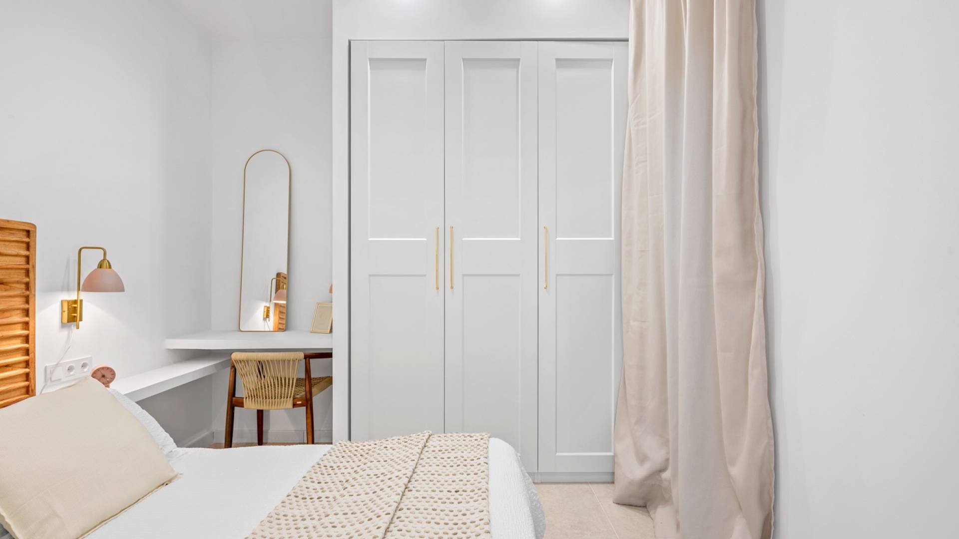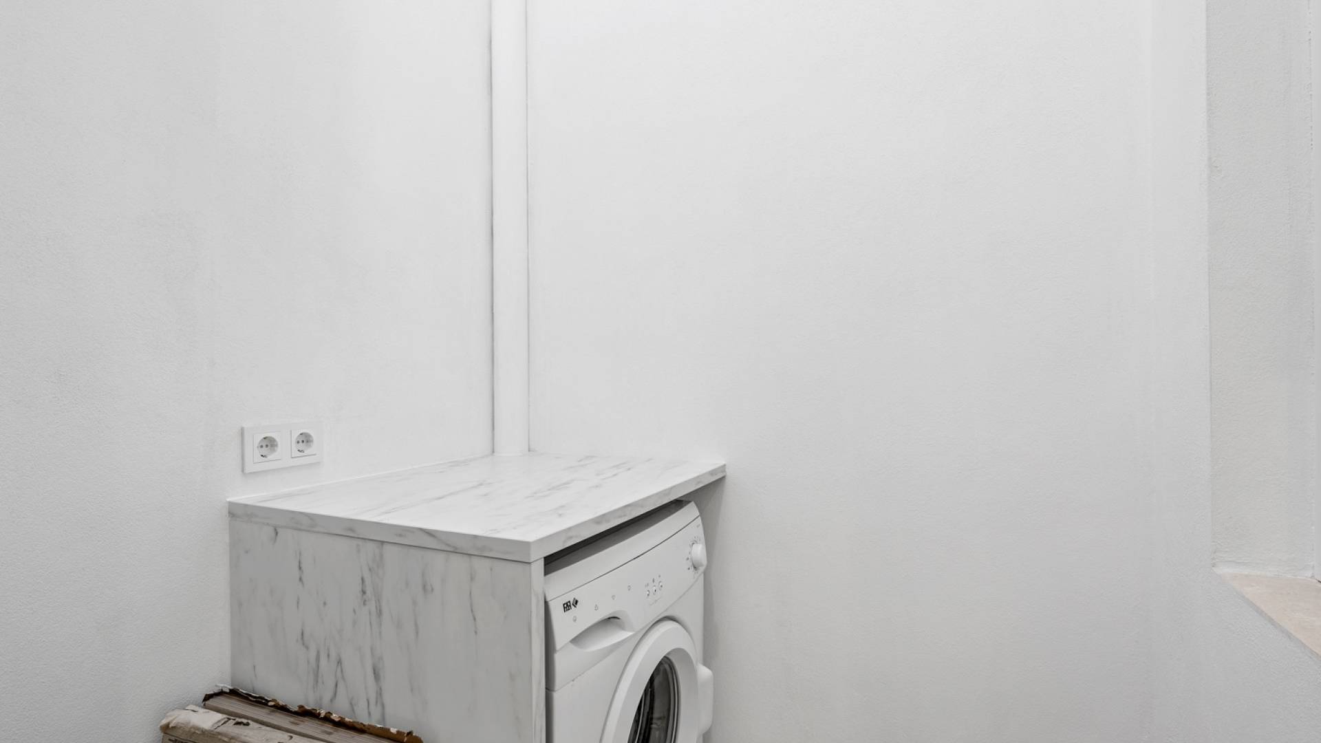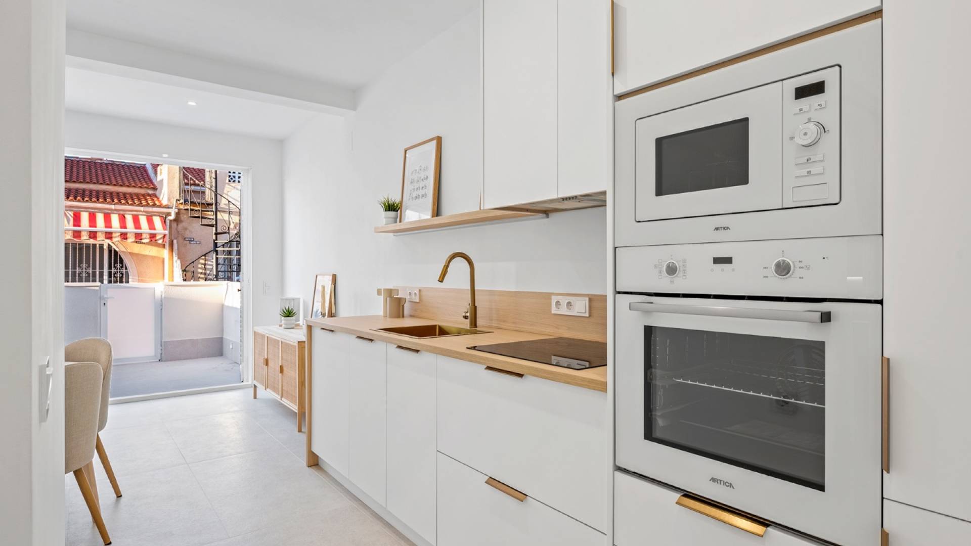 Modern and bright 59 m² property, recently renovated, featuring a carefully designed contemporary style with neutral finishes that enhance warmth and spaciousness.The layout offers 2 bedrooms, one full bathroom, and a pleasant open-plan living–dining area with a fully equipped integrated kitchen. The kitchen opens onto the living area, creating a functional and welcoming space ideal for everyday living.The living room connects directly to a private terrace, perfect for outdoor breakfasts or relaxing moments, and features large windows that ensure excellent natural light throughout the day. The private area includes a main bedroom with built-in wardrobes, a versatile second bedroom, and a separate laundry area, adding comfort and organization to the home. Outside, the property is located in a quiet residential setting with independent street access. An external staircase leads to a spectacular rooftop solarium, ideal for sunbathing, enjoying open views, or creating a chill-out area.