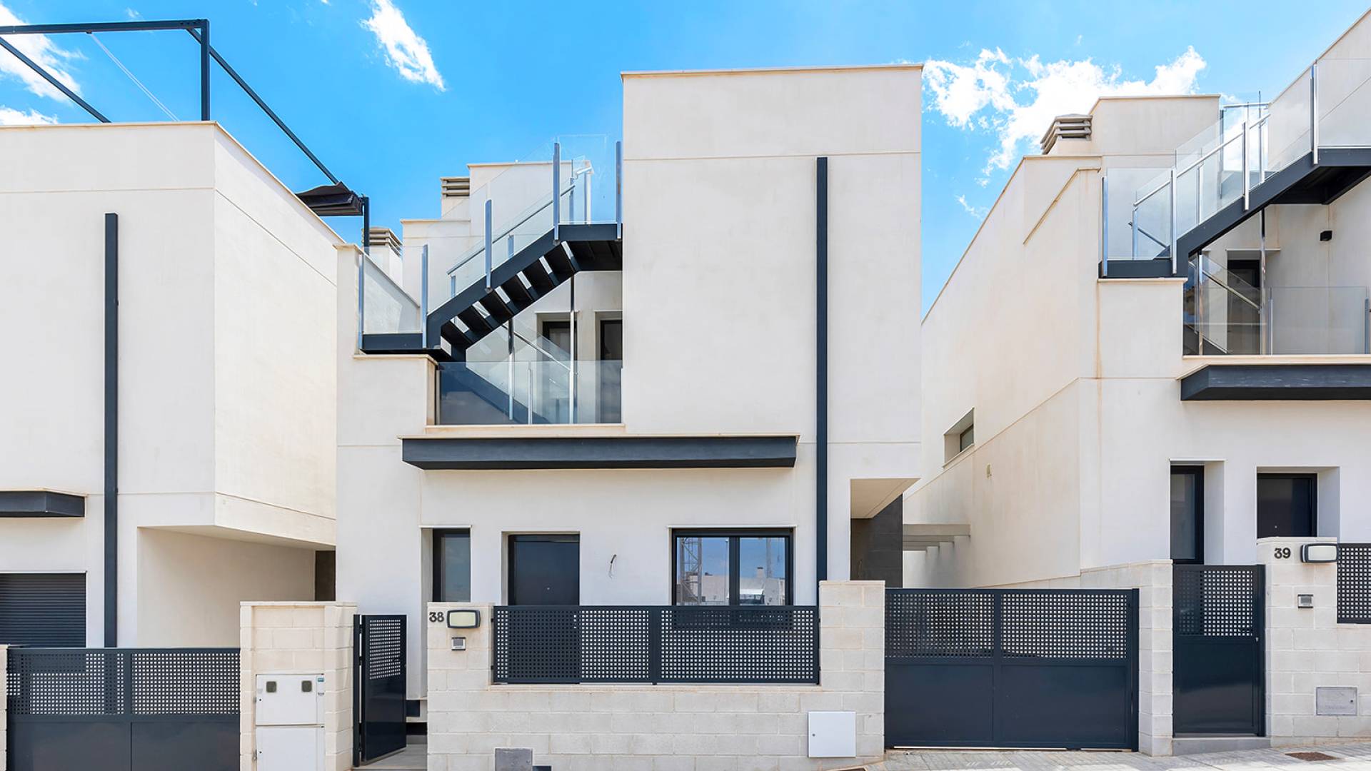 Modern villa with 3 bedrooms and 2 bathrooms. The property is distributed on 2 floors, on the ground floor there is a living-dining room with open kitchen, 1 bedroom and 1 bathroom. Upstairs we will find 2 bedrooms, a bathroom and a terrace. The house also has a large solarium of 37m2. The villa also has a private pool and private entrance for the car. PAU 26 is a beautiful residential area of Orihuela Costa with all the services and amenities between the golf and the sea. Nearby is the shopping center La Zenia Boulevard. Also nearby is the Villamartin Golf Course, Real Club de Golf Campoamor and Las Ramblas Golf Course, surrounded by schools, shopping centers, restaurants, pharmacies, bus stops that favor the stay throughout the year. It connects easily with the national road N-332 and the Mediterranean freeway AP-7. The beaches of Orihuela Costa such as La Zenia, Campoamor and Playa Flamenca are just a few minutes away by car: Colinas, Campoamor, Las Ramblas and Villamartin.