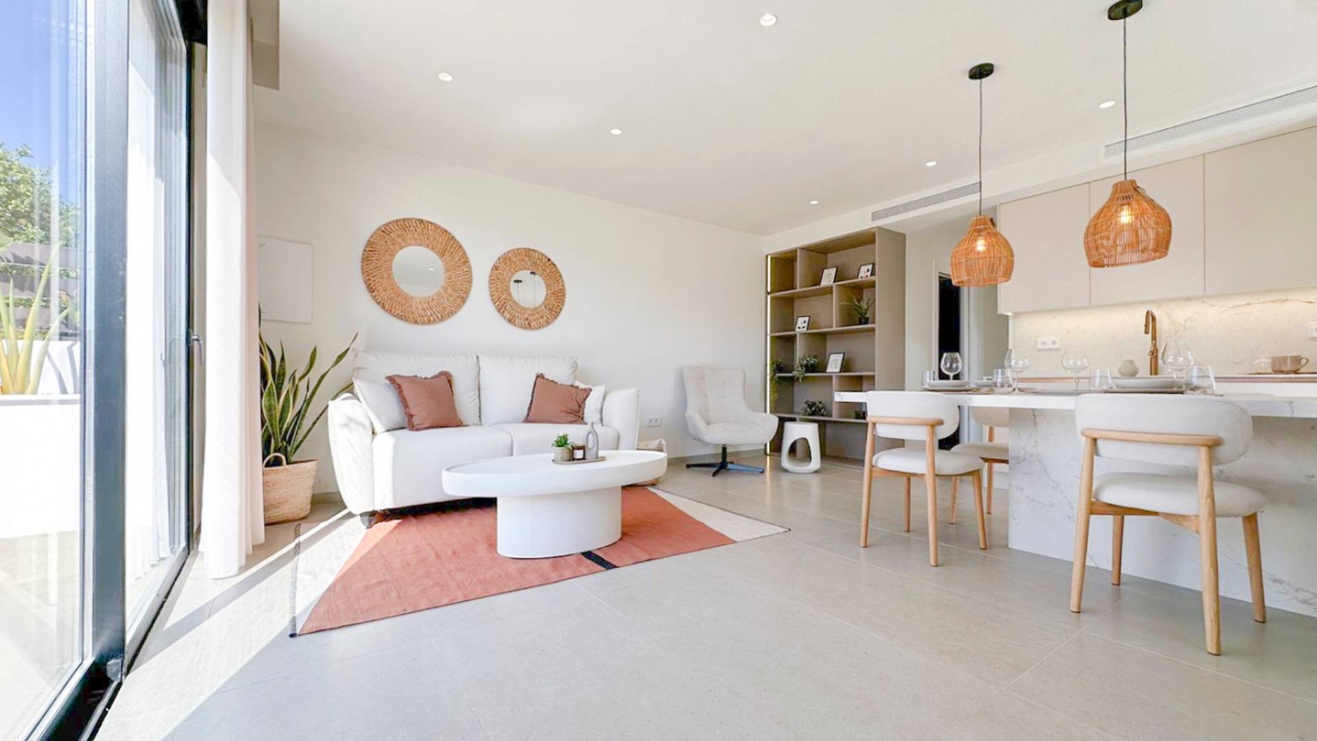 We present this attractive home, recently renovated and designed to enjoy the Mediterranean lifestyle with comfort, natural light and outdoor spaces ideal for enjoying the climate all year round. The property offers 73 m² built area (59 m² usable), distributed in a practical and functional layout. It features two bedrooms with built-in wardrobes and two bathrooms, making it ideal as a permanent residence, holiday home or investment. The living area consists of a bright open-plan living and dining room with a contemporary integrated kitchen, creating a spacious environment that connects seamlessly with the outdoor area. Outside, the property sits on a 200 m² plot with a private garden and swimming pool, perfect for relaxing and enjoying the sunny weather. The pool area also includes an outdoor shower. On the upper level, there is a spacious solarium with a pergola, ideal for creating a chill-out area or outdoor dining space with total privacy. The home is equipped with air conditioning, individual heating, electric shutters, an automated car access gate and a storage room. Its south and west orientation ensures excellent natural light throughout the day. A modern, recently renovated property ready to move into, located just minutes from the coast and all amenities in Santiago de la Ribera.