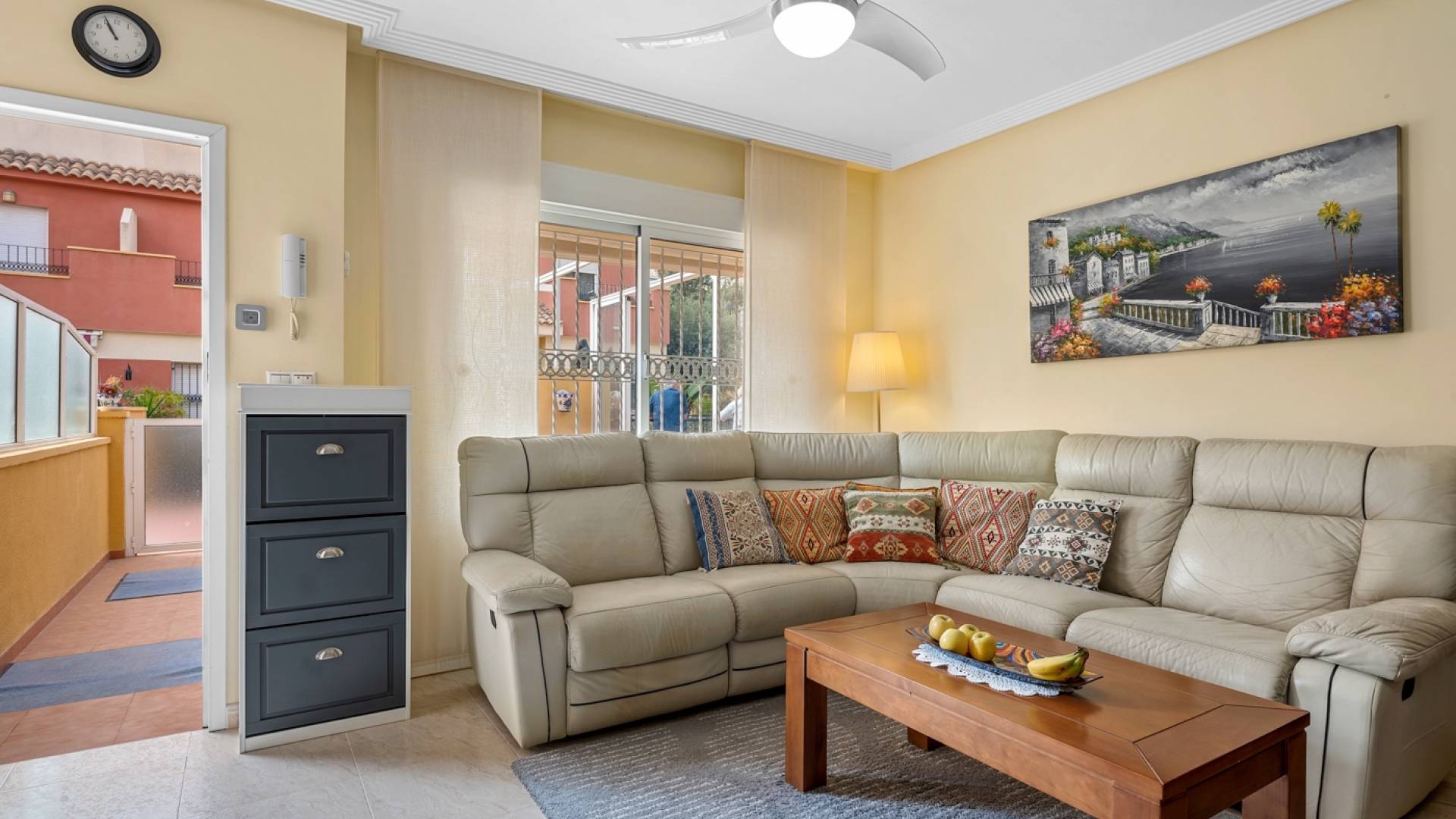 Located in the highly sought-after area of Villamartín on the beautiful Costa Blanca, this charming south-facing corner townhouse offers the perfect combination of space, privacy and Mediterranean lifestyle. The property sits on a large private corner plot of over 200 m², allowing plenty of outdoor space and sunshine throughout the day thanks to its excellent south orientation. Being a corner property also provides extra privacy, natural light and a more open feel compared to standard townhouses. The home is distributed over three levels: Ground floor: bright living and dining area, separate fully equipped kitchen, one bedroom and one bathroom — ideal for guests or convenient single-level living. First floor: two spacious bedrooms, both with their own private balconies, plus a second bathroom. Top floor: a private rooftop solarium, perfect for sunbathing, relaxing or creating a chill-out area with excellent privacy. The property is part of a gated residential community with access to a beautiful communal swimming pool, ideal for enjoying the warm Mediterranean climate. The location is another major highlight. The house is within easy reach of restaurants, bars, supermarkets and shops, and just a few minutes from the popular shopping destination La Zenia Boulevard — one of the largest shopping centres in the region Key Features Corner townhouse with large 200+ m² plotSouth-facing orientation (sun all day)3 bedrooms / 2 bathrooms1 bedroom on the ground floorSeparate fully equipped kitchen + closed patioPrivate balconies for both upstairs bedroomsPrivate rooftop solariumGated communityCommunal swimming poolPrime location in VillamartínMinutes from La Zenia Boulevard This property is perfect as a holiday home, permanent residence or rental investment, thanks to its prime location and excellent outdoor space.