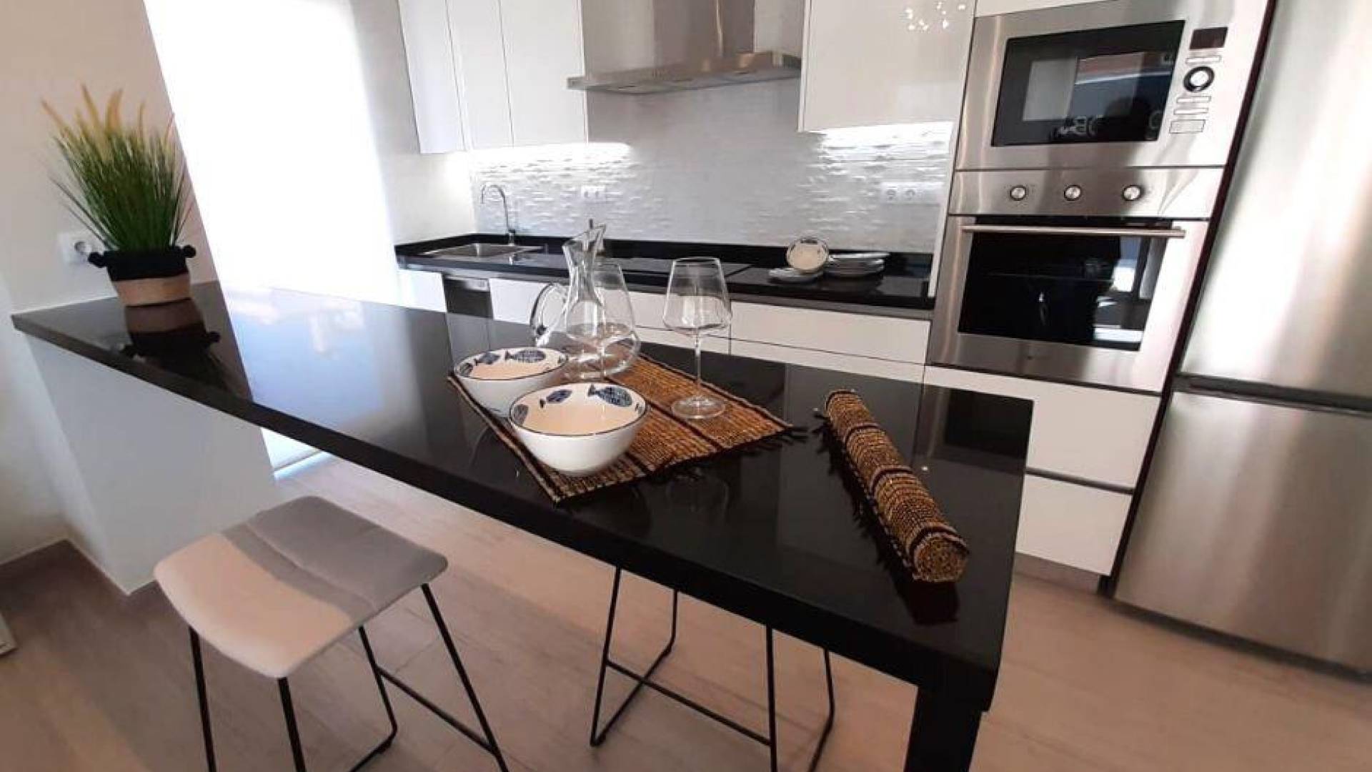 The exteriors of this residential are designed to maximize enjoyment of the Mediterranean climate. The properties feature private gardens, ideal for enjoying outdoor moments in a tranquil setting. Additionally, each property has a terrace, providing additional space to relax or entertain guests. For those seeking exclusive space, the penthouses offer the advantage of a private solarium, perfect for sunbathing in complete privacy. The proximity to the sea, just 3 kilometers away, allows for enjoyment of sea views and breezes, making every day a refreshing experience.