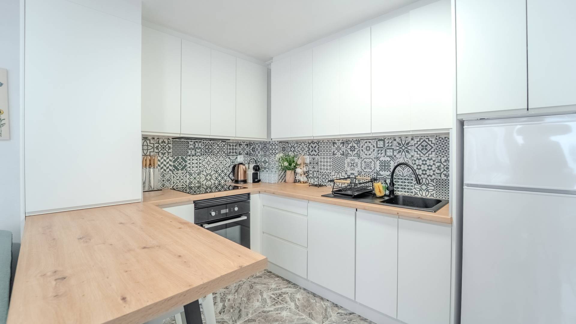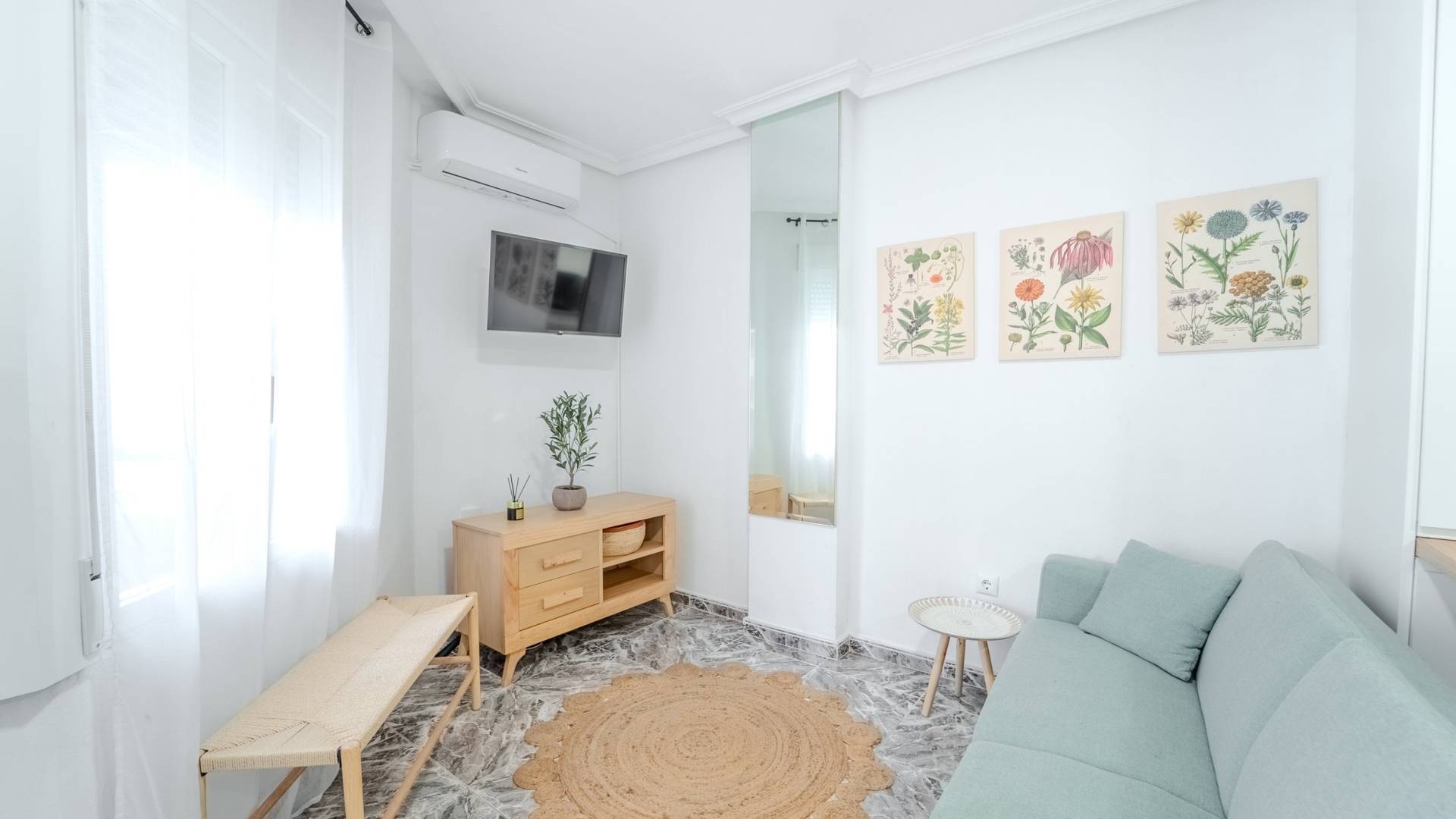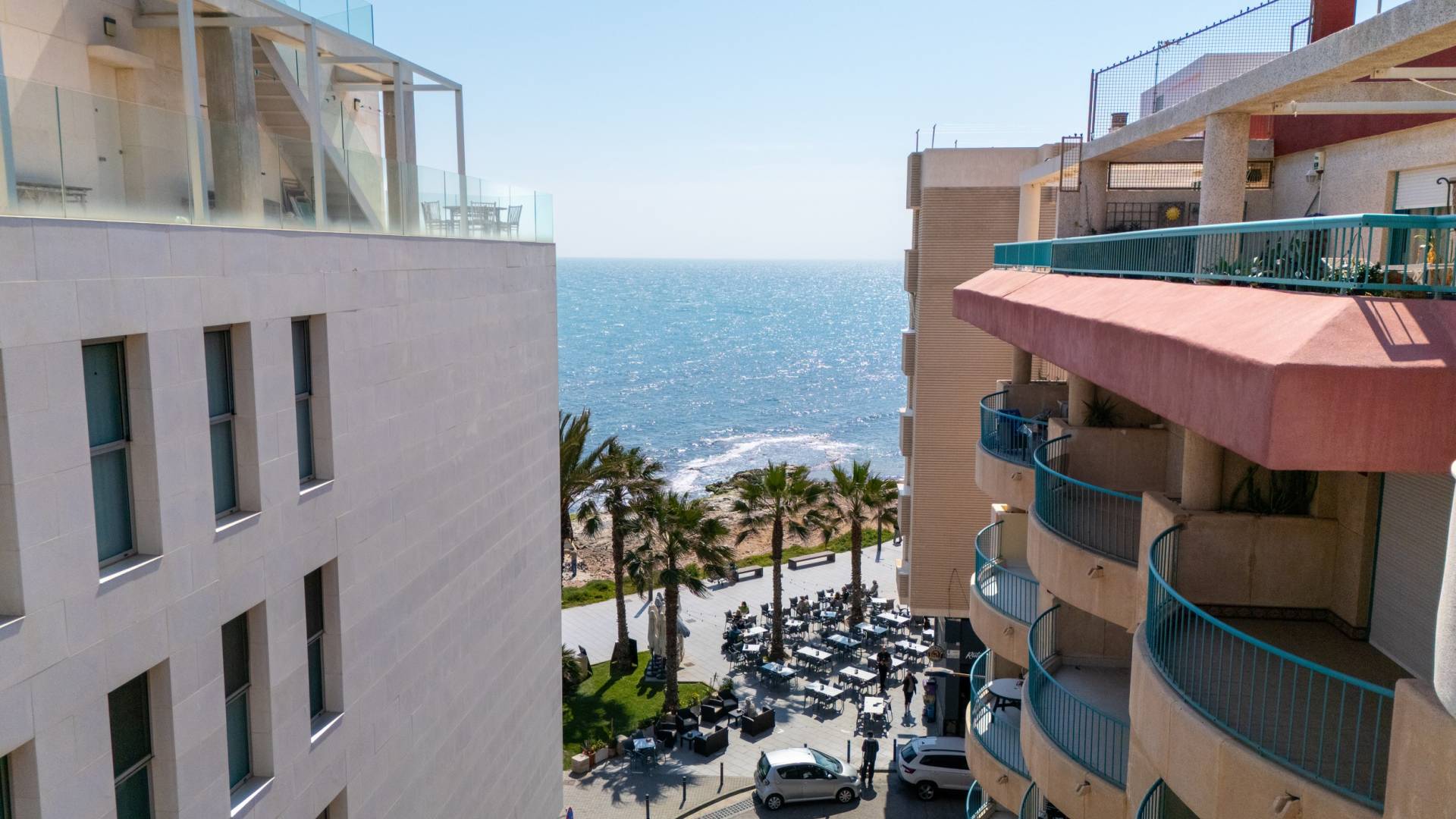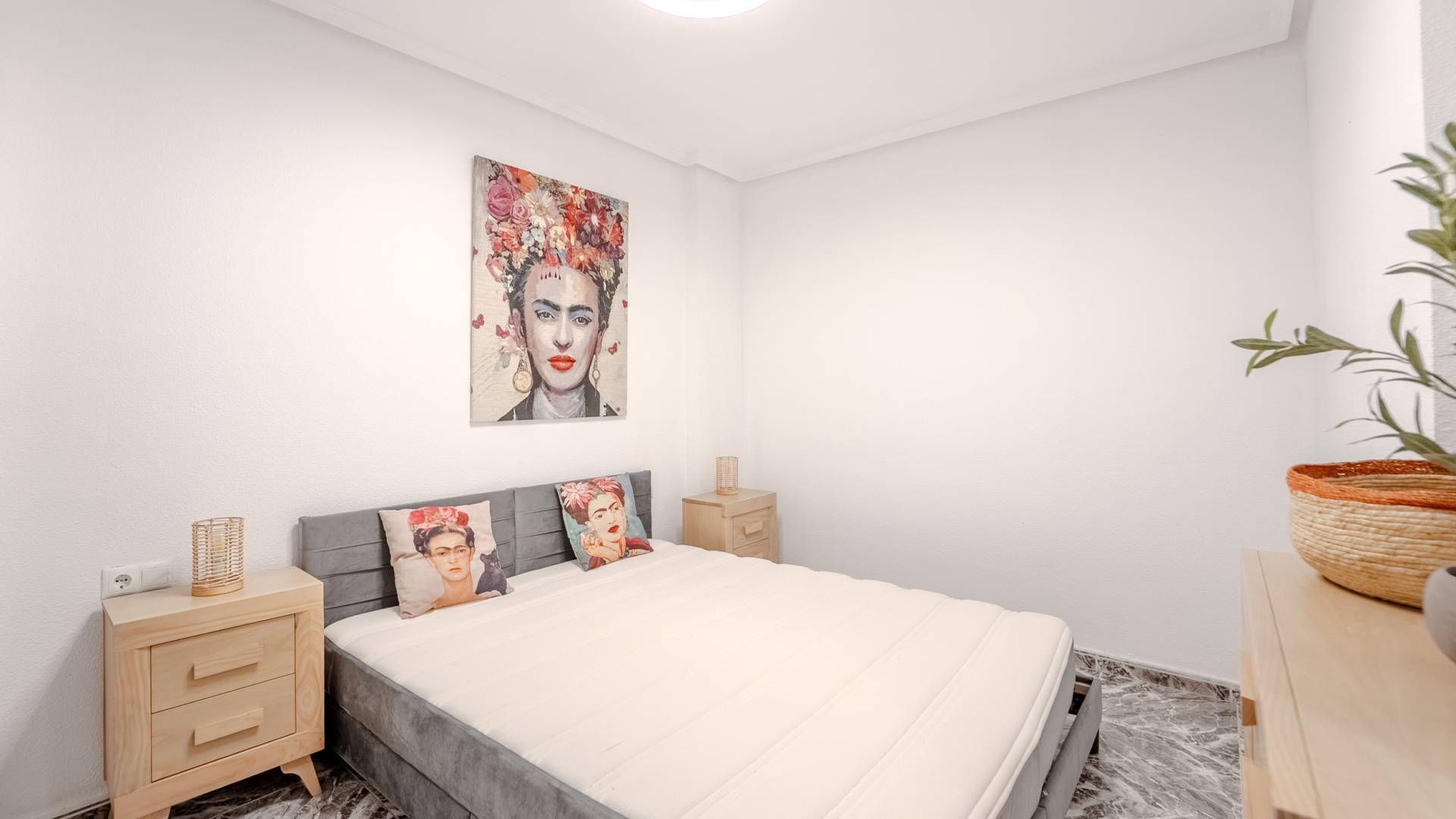 Renovated apartment with sea glimpse Renovated apartment with two bedrooms, open social areas and a cozy balcony with a side view of the Mediterranean Sea, near the beach in central Torrevieja. A warm welcome to this tastefully renovated apartment in one of Torrevieja's most sought-after locations - just a stone's throw from the sea and approximately 200 meters from the popular beach Playa del Cura. The home offers an open floorplan with livingroom and kitchen that interact in a harmonious and inviting way. The stylish kitchen is fully equipped with modern appliances and generous work surfaces, creating an ideal environment for both everyday life and social occasions. The living room is bright and pleasant, equipped with AC for high comfort during all seasons of the year. The apartment has two peaceful bedrooms and a fresh bathroom with a shower in a modern design. From the living room you can reach a small balcony where you can enjoy a pleasant side view of the sea - a perfect place for your morning coffee or a relaxing moment in the evening sun. Here you live in the heart of the city with immediate proximity to restaurants, cafes, shops and every conceivable service. An optimal accommodation for both permanent use and vacation. The home also includes a practical storage room located on the shared roof terrace - a much-appreciated extra that simplifies everyday life. This is a home that elegantly combines style, comfort and an unbeatable location on the Mediterranean Sea. Living in Torrevieja Center The most famous resort town south of Alicante is Torrevieja, which has been transformed from an old fishing village into a modern medium-sized town in the last few decades. With more than 100,000 inhabitants, Torrevieja has doubled its population over the past 30 years. In addition to fine sandy beaches, bays and beautiful beach walks, there is a large selection of shops, restaurants and bars as well as a rich nightlife. Torreviejas' center is contemporary and modern. It is located in front of the beach and the marina of the city. The Plaza de la Constitucion is the main axis of the center, where the town hall and the church of the Immaculate Conception are located, built with the stone of the Old Tower, from which the name of the city comes. Near the square is the Torrevieja Casino, built in 1896 and in a modernist style, where the facade with a neon-Nazari canopy stands out. It is one of the most popular terraces for Torrevejenses and tourists. Around the square are the most commercial streets of the city and the museums. You can visit the food market, known as "La Plasa", a good place to buy fresh products from the sea and the orchard of Bajo Segura; and the Museum of the Sea and Salt, the most important in the city because it reflects its origins and the importance of salt in its history. Torrevieja is located 36 km south of Alicante Airport and people from all over the world have been attracted here for various reasons, primarily the healthy climate with 320 days of sunshine a year, but also the opportunities offered by a multicultural tourist paradise. Here is everything you could need to live and live all year round and although there are many foreign residents here, it is still a bustling Spanish city with narrow streets and several small squares. In the northern part of Torrevieja, lies Torre La Mata which boasts its long promenade lined with restaurants and nightclubs. Here you live with direct proximity to the city, but do not have to be in the heaviest pulse. Here we can offer all types of housing in all possible price ranges. The northern part of Torrevieja really has something for everyone! South of the city after Mar Azul lies the bay of Cala Ferris; which offers a nice contrast to everything around. Framed by palm trees with small golden dunes, this is a place to enjoy a quiet swim in the crystal clear waters or something to drink at Restaurante Ferris with the terrace right next to the sea's rippling waves. Do you have any questions regarding selling or buying property in Torrevieja? Do not hesitate to contact our real estate agents in Torrevieja, and they will be delighted to assist you.