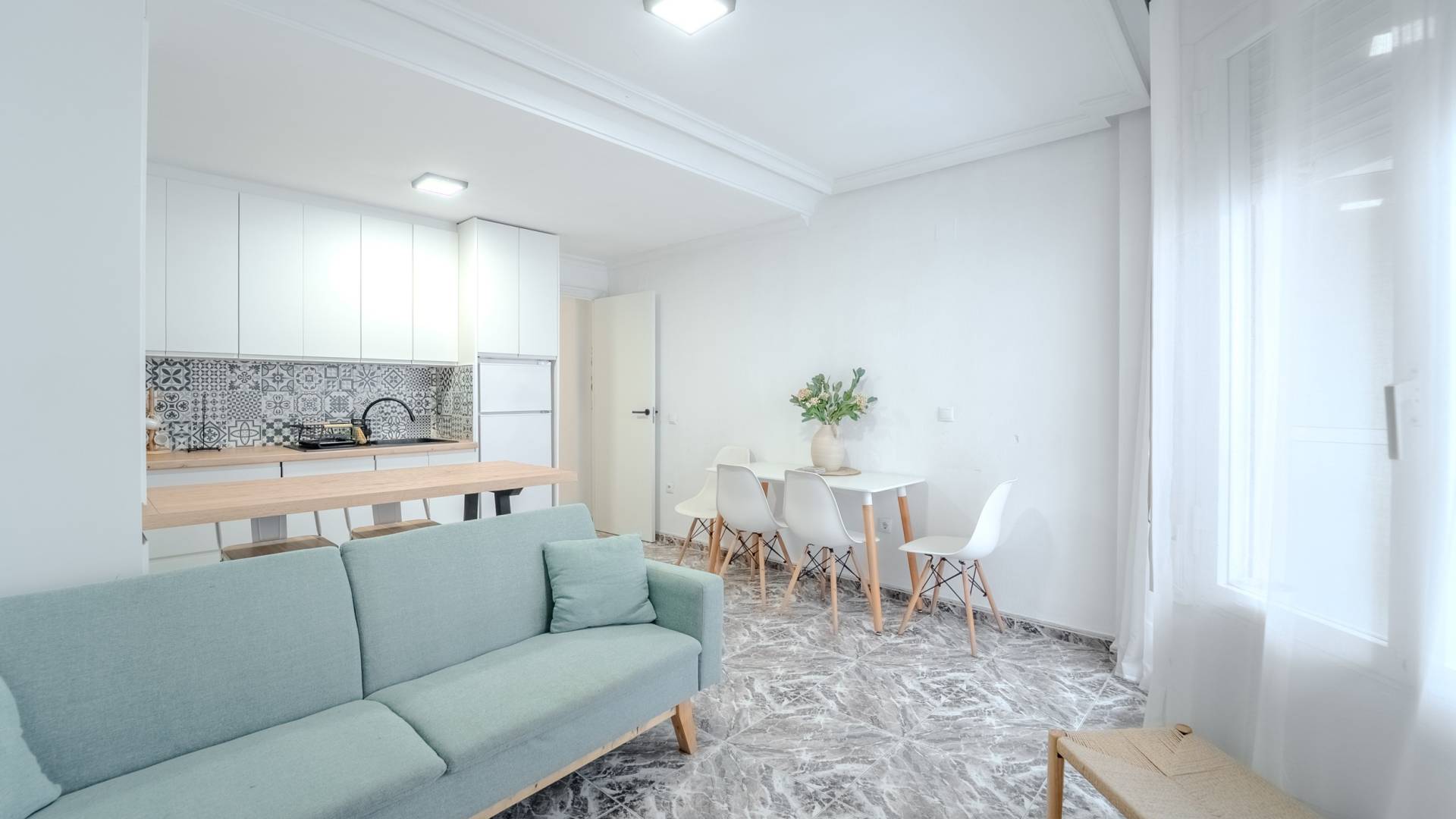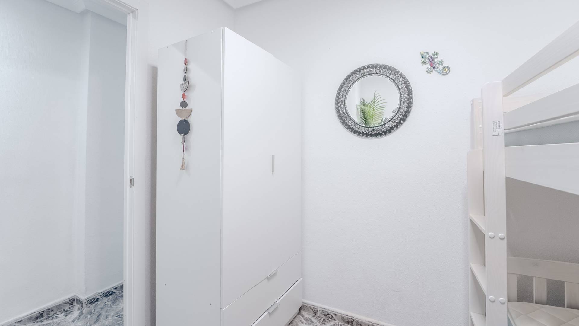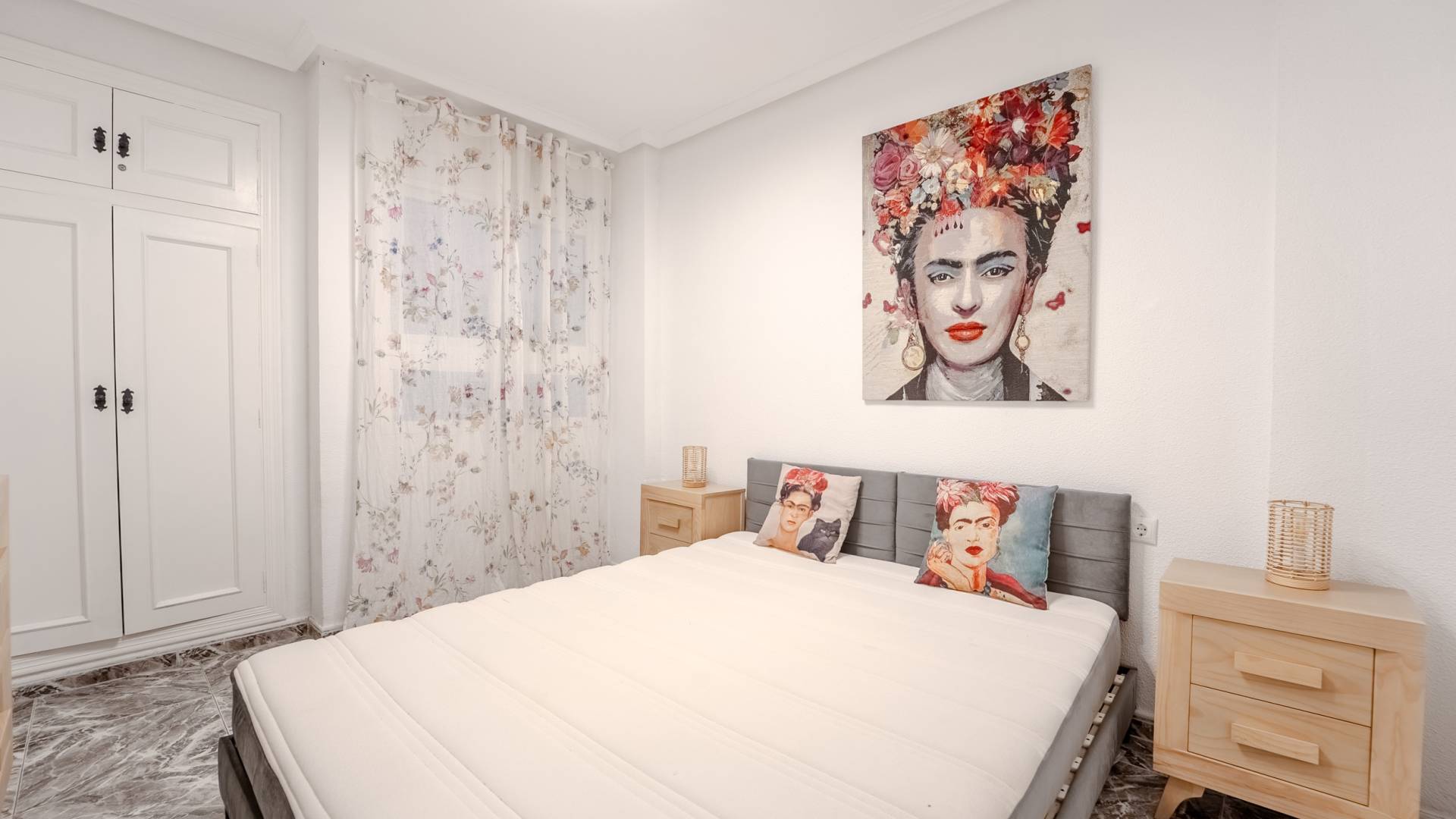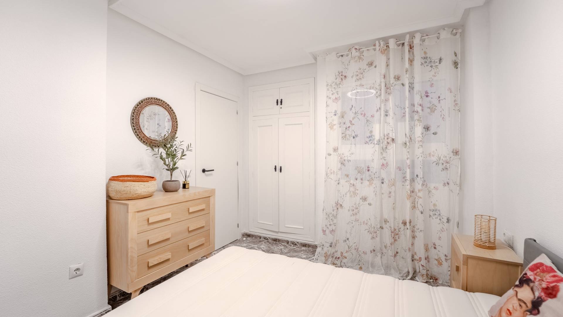 Renovated apartment with sea glimpse Renovated apartment with two bedrooms, open social areas and a cozy balcony with a side view of the Mediterranean Sea, near the beach in central Torrevieja. A warm welcome to this tastefully renovated apartment in one of Torrevieja's most sought-after locations - just a stone's throw from the sea and approximately 200 meters from the popular beach Playa del Cura. The home offers an open floorplan with livingroom and kitchen that interact in a harmonious and inviting way. The stylish kitchen is fully equipped with modern appliances and generous work surfaces, creating an ideal environment for both everyday life and social occasions. The living room is bright and pleasant, equipped with AC for high comfort during all seasons of the year. The apartment has two peaceful bedrooms and a fresh bathroom with a shower in a modern design. From the living room you can reach a small balcony where you can enjoy a pleasant side view of the sea - a perfect place for your morning coffee or a relaxing moment in the evening sun. Here you live in the heart of the city with immediate proximity to restaurants, cafes, shops and every conceivable service. An optimal accommodation for both permanent use and vacation. The home also includes a practical storage room located on the shared roof terrace - a much-appreciated extra that simplifies everyday life. This is a home that elegantly combines style, comfort and an unbeatable location on the Mediterranean Sea. Living in Torrevieja Center The most famous resort town south of Alicante is Torrevieja, which has been transformed from an old fishing village into a modern medium-sized town in the last few decades. With more than 100,000 inhabitants, Torrevieja has doubled its population over the past 30 years. In addition to fine sandy beaches, bays and beautiful beach walks, there is a large selection of shops, restaurants and bars as well as a rich nightlife. Torreviejas' center is contemporary and modern. It is located in front of the beach and the marina of the city. The Plaza de la Constitucion is the main axis of the center, where the town hall and the church of the Immaculate Conception are located, built with the stone of the Old Tower, from which the name of the city comes. Near the square is the Torrevieja Casino, built in 1896 and in a modernist style, where the facade with a neon-Nazari canopy stands out. It is one of the most popular terraces for Torrevejenses and tourists. Around the square are the most commercial streets of the city and the museums. You can visit the food market, known as "La Plasa", a good place to buy fresh products from the sea and the orchard of Bajo Segura; and the Museum of the Sea and Salt, the most important in the city because it reflects its origins and the importance of salt in its history. Torrevieja is located 36 km south of Alicante Airport and people from all over the world have been attracted here for various reasons, primarily the healthy climate with 320 days of sunshine a year, but also the opportunities offered by a multicultural tourist paradise. Here is everything you could need to live and live all year round and although there are many foreign residents here, it is still a bustling Spanish city with narrow streets and several small squares. In the northern part of Torrevieja, lies Torre La Mata which boasts its long promenade lined with restaurants and nightclubs. Here you live with direct proximity to the city, but do not have to be in the heaviest pulse. Here we can offer all types of housing in all possible price ranges. The northern part of Torrevieja really has something for everyone! South of the city after Mar Azul lies the bay of Cala Ferris; which offers a nice contrast to everything around. Framed by palm trees with small golden dunes, this is a place to enjoy a quiet swim in the crystal clear waters or something to drink at Restaurante Ferris with the terrace right next to the sea's rippling waves. Do you have any questions regarding selling or buying property in Torrevieja? Do not hesitate to contact our real estate agents in Torrevieja, and they will be delighted to assist you.