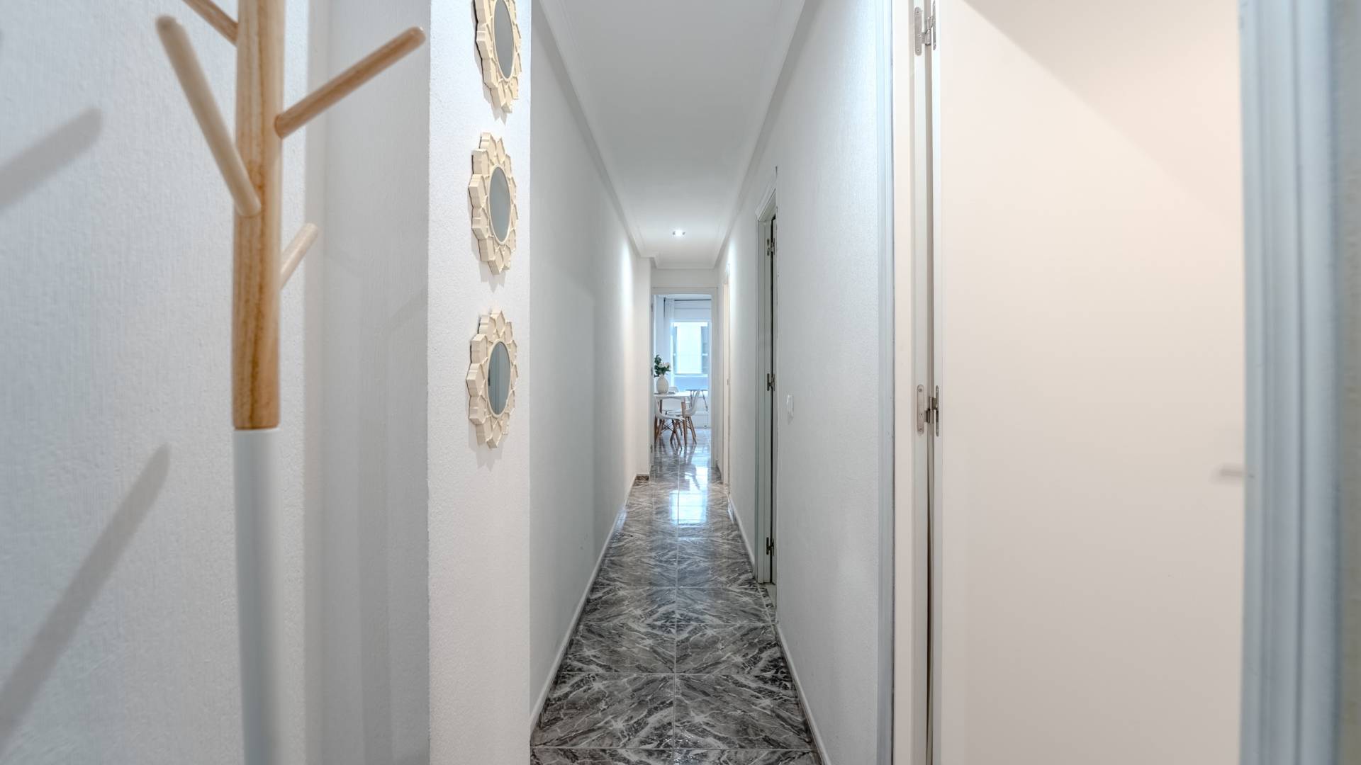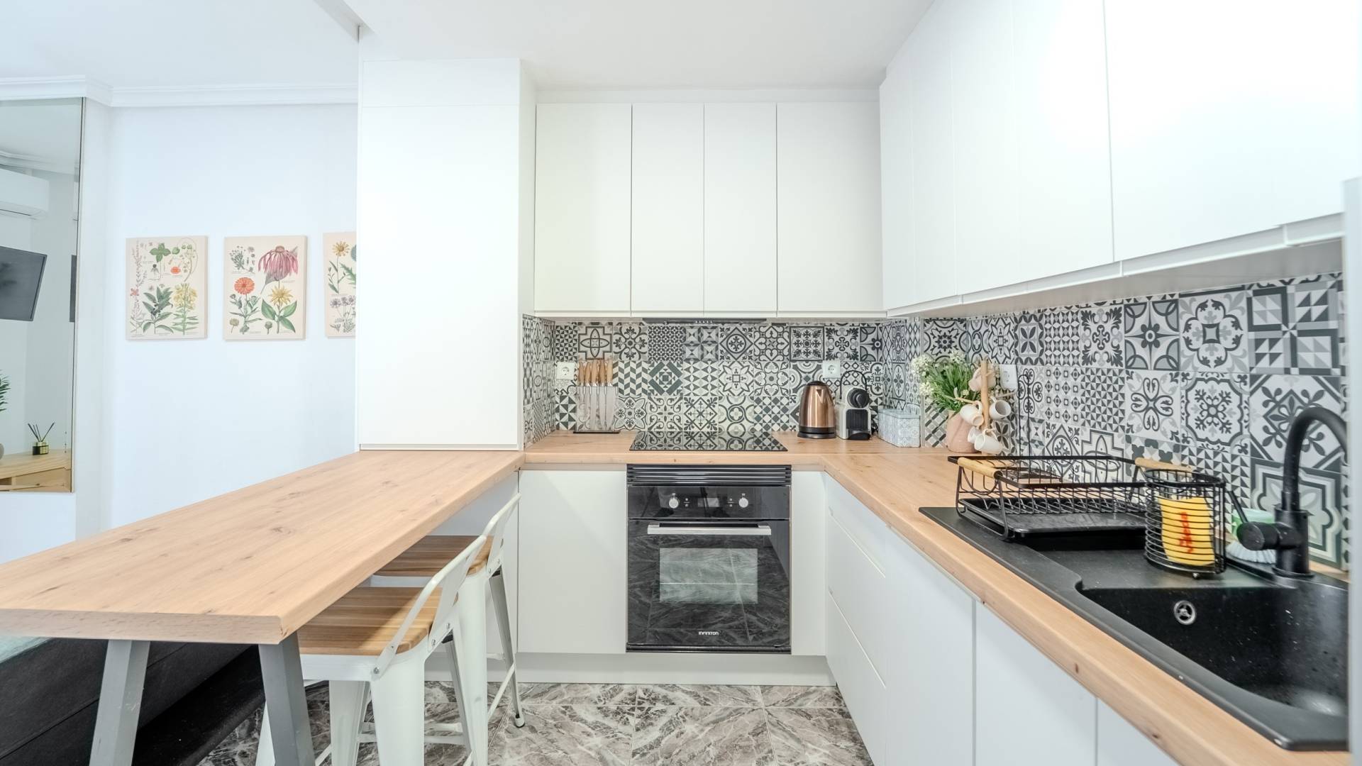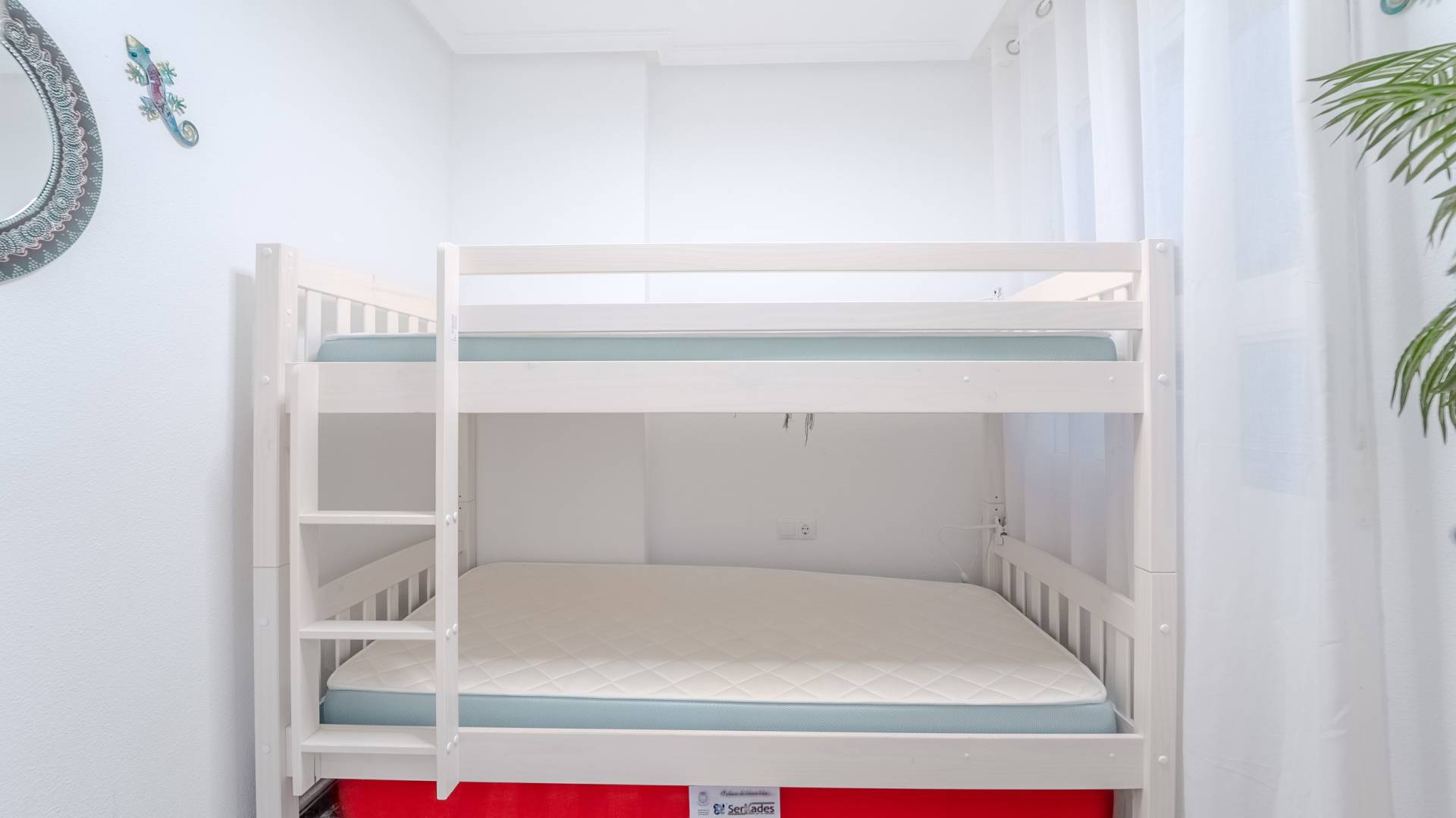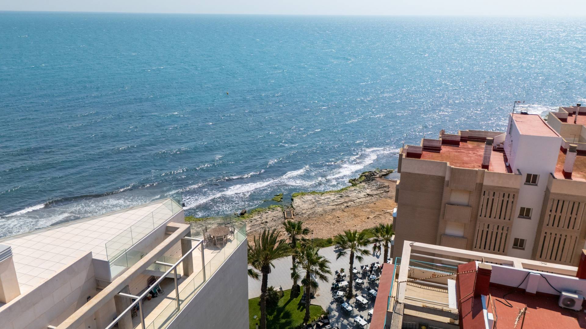 Renovated apartment with sea glimpse Renovated apartment with two bedrooms, open social areas and a cozy balcony with a side view of the Mediterranean Sea, near the beach in central Torrevieja. A warm welcome to this tastefully renovated apartment in one of Torrevieja's most sought-after locations - just a stone's throw from the sea and approximately 200 meters from the popular beach Playa del Cura. The home offers an open floorplan with livingroom and kitchen that interact in a harmonious and inviting way. The stylish kitchen is fully equipped with modern appliances and generous work surfaces, creating an ideal environment for both everyday life and social occasions. The living room is bright and pleasant, equipped with AC for high comfort during all seasons of the year. The apartment has two peaceful bedrooms and a fresh bathroom with a shower in a modern design. From the living room you can reach a small balcony where you can enjoy a pleasant side view of the sea - a perfect place for your morning coffee or a relaxing moment in the evening sun. Here you live in the heart of the city with immediate proximity to restaurants, cafes, shops and every conceivable service. An optimal accommodation for both permanent use and vacation. The home also includes a practical storage room located on the shared roof terrace - a much-appreciated extra that simplifies everyday life. This is a home that elegantly combines style, comfort and an unbeatable location on the Mediterranean Sea. Living in Torrevieja Center The most famous resort town south of Alicante is Torrevieja, which has been transformed from an old fishing village into a modern medium-sized town in the last few decades. With more than 100,000 inhabitants, Torrevieja has doubled its population over the past 30 years. In addition to fine sandy beaches, bays and beautiful beach walks, there is a large selection of shops, restaurants and bars as well as a rich nightlife. Torreviejas' center is contemporary and modern. It is located in front of the beach and the marina of the city. The Plaza de la Constitucion is the main axis of the center, where the town hall and the church of the Immaculate Conception are located, built with the stone of the Old Tower, from which the name of the city comes. Near the square is the Torrevieja Casino, built in 1896 and in a modernist style, where the facade with a neon-Nazari canopy stands out. It is one of the most popular terraces for Torrevejenses and tourists. Around the square are the most commercial streets of the city and the museums. You can visit the food market, known as "La Plasa", a good place to buy fresh products from the sea and the orchard of Bajo Segura; and the Museum of the Sea and Salt, the most important in the city because it reflects its origins and the importance of salt in its history. Torrevieja is located 36 km south of Alicante Airport and people from all over the world have been attracted here for various reasons, primarily the healthy climate with 320 days of sunshine a year, but also the opportunities offered by a multicultural tourist paradise. Here is everything you could need to live and live all year round and although there are many foreign residents here, it is still a bustling Spanish city with narrow streets and several small squares. In the northern part of Torrevieja, lies Torre La Mata which boasts its long promenade lined with restaurants and nightclubs. Here you live with direct proximity to the city, but do not have to be in the heaviest pulse. Here we can offer all types of housing in all possible price ranges. The northern part of Torrevieja really has something for everyone! South of the city after Mar Azul lies the bay of Cala Ferris; which offers a nice contrast to everything around. Framed by palm trees with small golden dunes, this is a place to enjoy a quiet swim in the crystal clear waters or something to drink at Restaurante Ferris with the terrace right next to the sea's rippling waves. Do you have any questions regarding selling or buying property in Torrevieja? Do not hesitate to contact our real estate agents in Torrevieja, and they will be delighted to assist you.